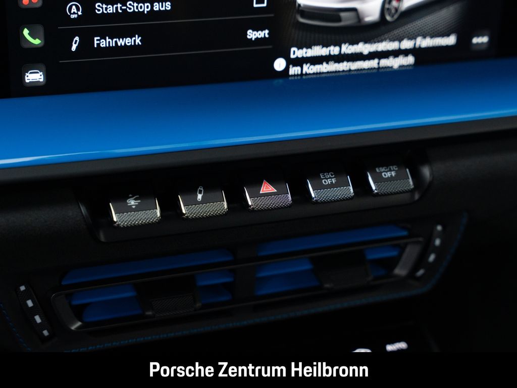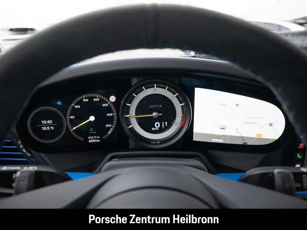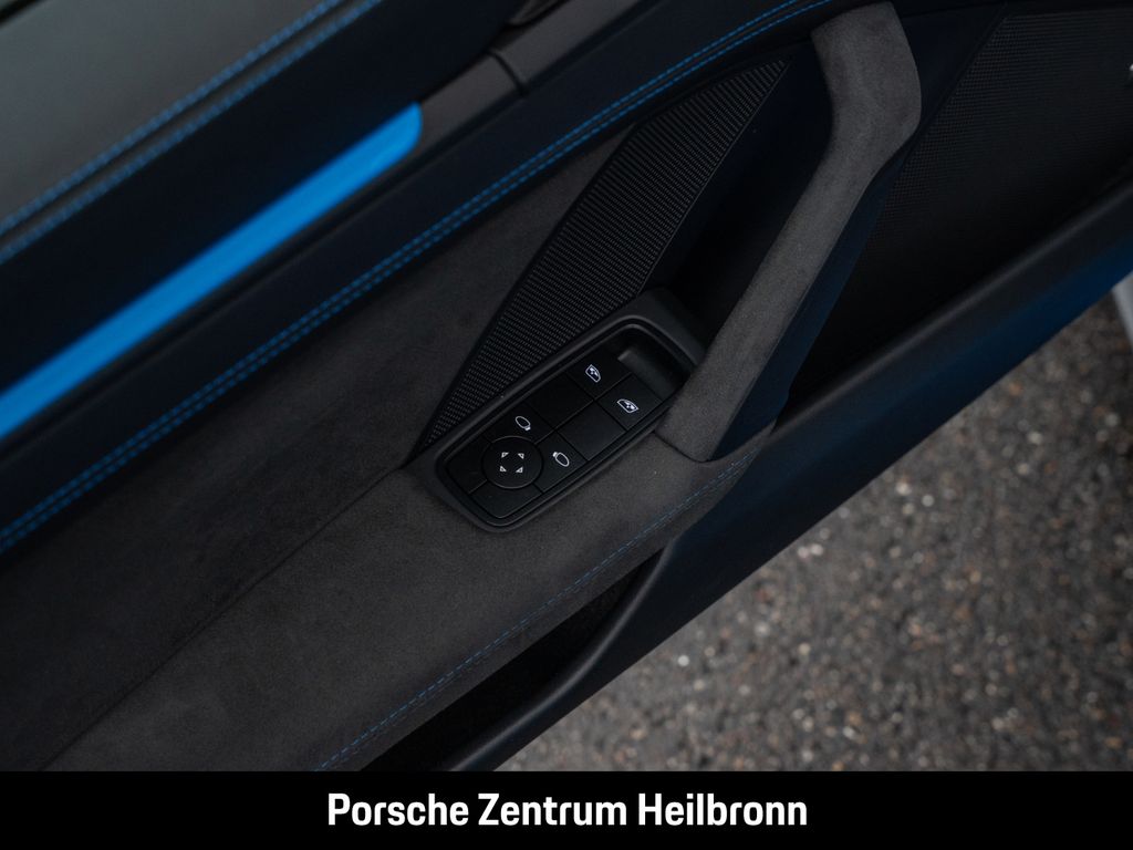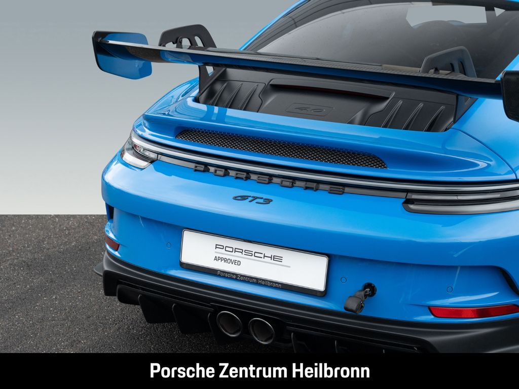 - Weiteres: Inkl. 992.1 GT3 Manthey Performance Kit !, (6A8) Clubsportpaket mit zusätzlichem straßenzugelassenen 1 kg-Feuerlöscher, (UD1) LED-Türprojektoren „PORSCHE“ Schriftzug, (AMT) Modellbezeichnung auf Türen schwarz, (8LH) Chrono Paket inklusive Vorrüstung Laptrigger, (0I2) 90 Liter Kraftstofftank, (2UH) Liftsystem Vorderachse, (1NG) Räder lackiert in Schwarz (seidenglanz) mit umlaufendem Felgenrand lackiert in Sharkblue, (QQ2) Licht-Design-Paket, (Q1K) Vollschalensitze, (QE1) Ablagenpaket, (FX8) Sicherheitsgurte sharkblue, (UP3) Zifferblatt Chrono Stoppuhr weiß, (7V3) Zifferblatt Drehzahlmesser weiß, (9JD) Raucherpaket, (4QX) 6-Punkt-Gurt für Beifahrerseite, (7TH) Interieur-Paket lackiert in Exterieurfarbe, (AVK) Luftdüsen Leder mit Lamellen lackiert, (3B0) Blenden Gurtaustritt Race-Tex, (6E5) Porsche Wappen auf Deckel Ablagefach Race-Tex, (AFB) Fahrzeugschlüssel lackiert in Exterieurfarbe mit Schlüsseletui Race-Tex, (AGB) Bordmappe Carbon matt - speedblau, (9VL) BOSE® Surround Sound-System, (7I2) Porsche Vehicle Tracking System Plus (PVTS Plus), (8JU) LED-Matrix Hauptscheinwerfer abgedunkelt inkl. Porsche Dynamic Light System Plus (PDLS Plus), (P14) Automatisch abblendende Innen-/Außenspiegel mit integriertem Regensensor, (VW7) Leichtbau- und Geräuschschutzverglasung inklusive Privacy-Verglasung, (KA2) ParkAssistent hinten inkl. Rückfahrkamera, (QR9) Verkehrszeichenerkennung, (VC2) HomeLink®