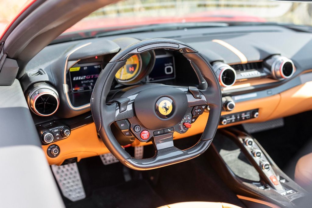 Peinture Spéciale 2 couches Rosso 70ème Anniversaire, écrous de roues en titane, caméras 360°, système Hifi Premium, Jantes Sport 20 pouces forgées Diamant, fond de compte-tour en Jaune, écran passager, écussons SCUDERIA sur les ailes Avant, Cavalinos brodés sur les appuis tête en Nero, Lift System, inserts en fibre de Carbone sur le tableau de bord, bandes en cuir, partie supérieure du tunnel en fibre de Carbone, volant LED's en Carbone, poignées de porte intérieure en fibre de Carbone, étriers de freins peints en Jaune, feux AV adaptatifs + SBL, pack full ADAS