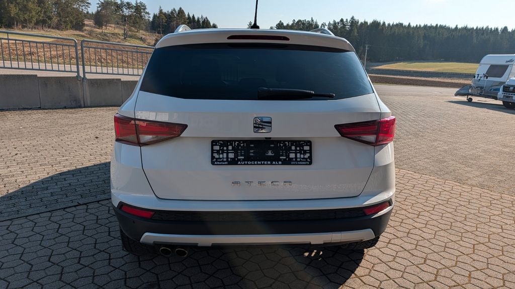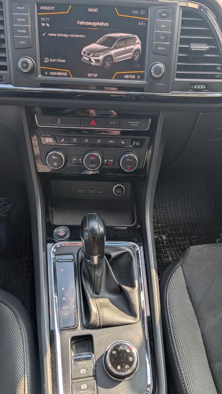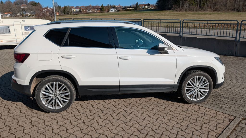 Entdecken Sie den SEAT Ateca, einen vielseitigen SUV mit Allradantrieb, der sowohl auf der Straße als auch im Gelände überzeugt. Dieser gepflegte Gebrauchtwagen aus dem Jahr 2017 bietet mit seinem 190 PS starken Dieselmotor und Automatikgetriebe ein dynamisches Fahrerlebnis. Die weiße Karosserie in Kombination mit dem grauen Alcantara-Interieur verleiht dem Fahrzeug eine elegante Optik. Besonders hervorzuheben sind das Panorama-Glasdach und die elektrische Heckklappe für zusätzlichen Komfort im Alltag.Die umfangreiche Ausstattung umfasst ein Navigationssystem mit Touchscreen, LED-Scheinwerfer mit Kurvenlichtfunktion und zahlreiche Fahrassistenzsysteme wie Spurhalteassistent und Verkehrszeichenerkennung. Das Automatik-Klimasystem sorgt für angenehme Temperaturen, während die beheizbaren Sitze und das Winterpaket auch kalte Tage komfortabel gestalten. Mit lückenlosem Scheckheft und grüner Umweltplakette (Euro 6) ist dieser Ateca ein zuverlässiger Begleiter.