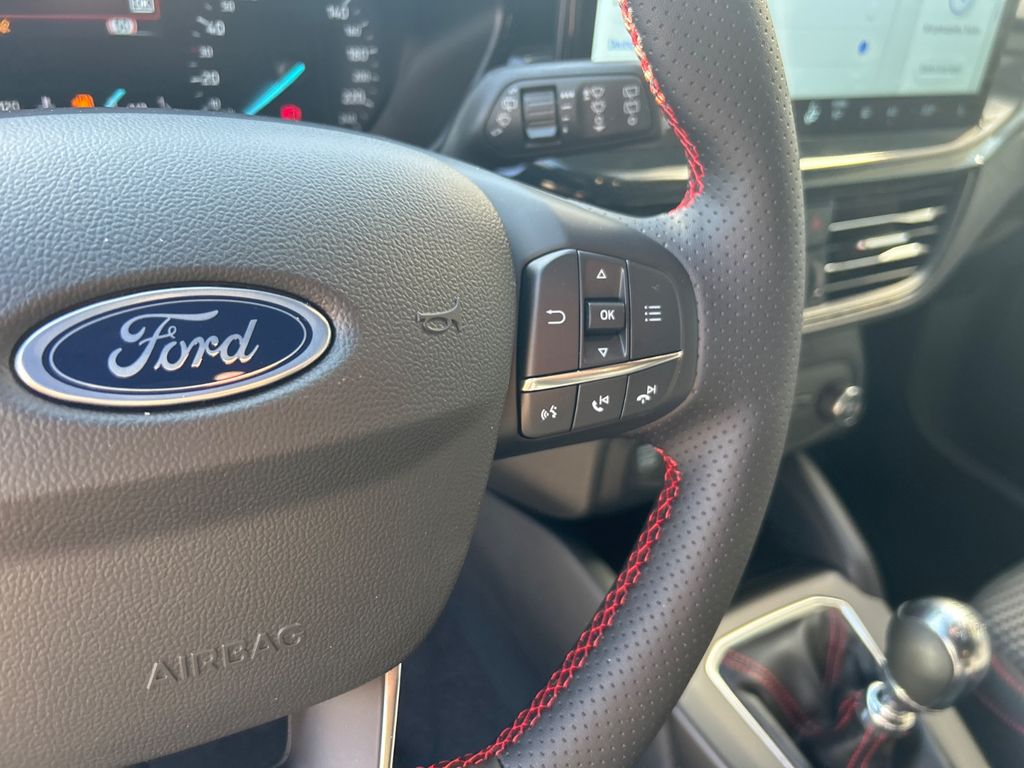Airbag Beifahrerseite abschaltbar, Antischlupfregelung (ASR), Audio-Navigationssystem Ford SD (mit Ford SYNC 4 und Touchscreen-Farbdisplay), Außenspiegel elektr. anklappbar, Außenspiegel elektr. verstell- und heizbar, Blinkleuchte in Außenspiegel integriert, Body-Styling-Paket, Bord-/Verbrauchscomputer, Dachhimmel Stoff, dunkel, Dimmer Instrumentenbeleuchtung, Doppelendrohr Auspuffanlage, Elektr. Bremskraftverteilung (EBD), Fahrassistenz-System: Berganfahr-Assistent (Hill-Holder), Fahrassistenz-System: Notbrems-Assistent, Fahrassistenz-System: Post-Collision-System, Fahrassistenz-System: Pre-Collision-System, Fahrassistenz-System: Spurhalteassistent, Farbdisplay (8 Zoll), Farbdisplay für Bordcomputer, Fensterheber elektrisch vorn + hinten mit Komfortschließung, Fußmatten Teppich, Fußmatten Velours - vorn, Gepäckraumabdeckung / Rollo, Getriebe 6-Gang - Typ: 6MX65, Innenraumfilter: Staub- und Pollenfilter, Innenspiegel mit Abblendautomatik, Intelligent Protection System (IPS), Intelligenter Geschwindigkeits-Begrenzer, Isofix-Aufnahmen für Kindersitz, Karosserie: 5-türig, Klimaautomatik 2-Zonen, Kopfstützen hinten mechan. verstellbar (3 Stück), Kopfstützen vorn 4-fach verstellbar, Lenkrad (Sport/Leder, ST), Lenksäule (Lenkrad) höhen-/längsverstellbar, LM-Felgen, Mild-Hybrid 92 kW (Motor 1,0 Ltr. - 92 kW EcoBoost), Mittelkonsole Premium, Modellpflege, My Key (2. Fahrzeugschlüssel programmierbar), Nebelscheinwerfer LED, Parkbremse elektrisch mit Auto-Hold-Funktion, Parkpilotsystem vorn und hinten, Reifen-Reparaturkit, Reifendruck-Kontrollsystem, Rücksitzlehne geteilt/klappbar (60:40), Schadstoffarm nach Abgasnorm Euro 6d, Schalt-/Wählhebelgriff Aluminium, Schalt-/Wählhebelgriff Leder, Schaltpunktanzeige, Scheinwerfer LED, Scheinwerfer mit abgedunkelten Hintergrund, Scheinwerfer-Assistent mit Tag-/Nachtsensor, Sitz vorn links höhenverstellbar, Sonnenblende links mit Spiegel, Sonnenblende rechts mit Spiegel, Sport-Fahrwerk, Sportsitze vorn, Start/Stop-Anlage, Verglasung getönt, Warnanlage für Sicherheitsgurte hinten, Warnanlage für Sicherheitsgurte vorn, Innenspiegel automatisch abblendend, Geschwindigkeitsbegrenzer mit vorausschauender Regelung, Regensensor