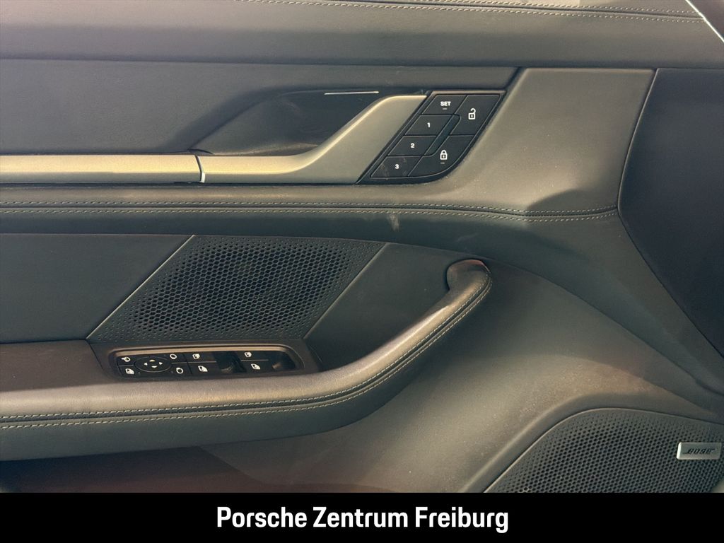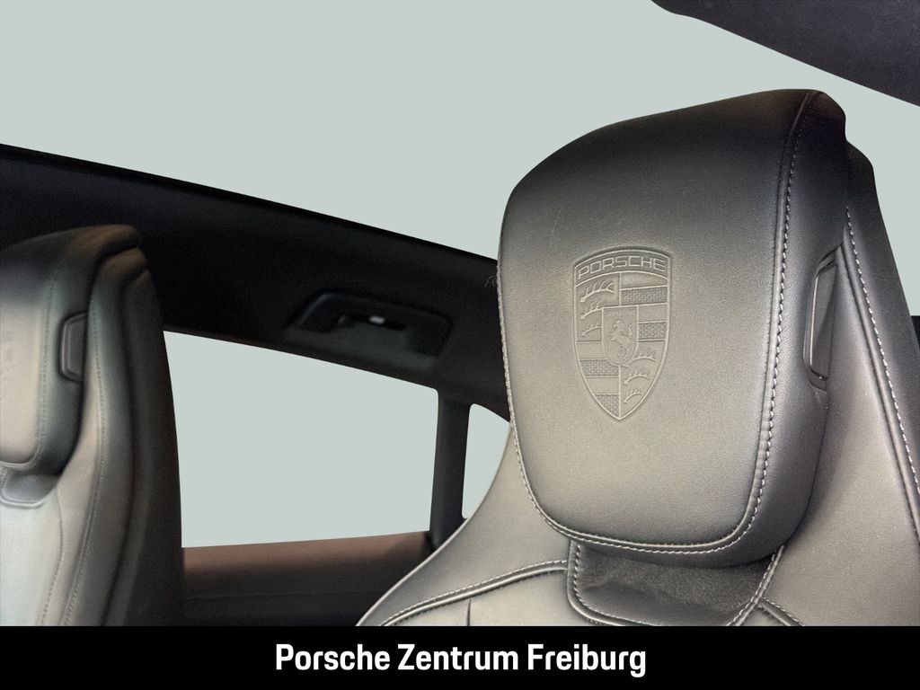 - Weiteres: (3S2) Dachreling Aluminium schwarz, (QJ4) Seitenscheibenleisten in Schwarz (hochglanz), (NG1) Vorrüstung Fahrradheckträger, (0NC) Modellbezeichnung lackiert in Schwarz (hochglanz), (J9Q) Performancebatterie Plus, (8LD) Sport Chrono Paket inkl. Push-to-Pass und Rundstreckenmodus, (GM3) Porsche Electric Sport Sound, (65K) 21-Zoll Aero Design Räder, (3J7) Porsche Wappen auf Kopfstützen (Vordersitze), (Q2J) Komfortsitze vorn (14-Wege, elektrisch) mit Memory-Paket, (5KA) 4+1 Sitzanlage, (4A4) Sitzheizung vorn und hinten, (9VL) BOSE® Surround Sound-System, (8JU) HD-Matrix LED-Hauptscheinwerfer abgedunkelt mit 4-Punkt Tagfahrlicht in Gletschereisblau, (8VL) Leuchtenband mit beleuchtetem „PORSCHE Schriftzug schwarz, (3FG) Panoramadach, (VW6) Geräusch- und Wärmeschutzverglasung inkl. Privacy-Verglasung, (KS1) Head-Up Display, (4F2) Komfortzugang, (GZ2) Soft-Close-Türen, (FT3) Surround View inkl. Aktive Einparkunterstützung, (7Y8) Spurwechselassistent, (P67) Abstandsregeltempostat