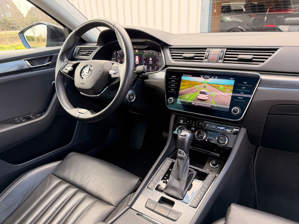 Sonderausstattung:Anhängerkupplung Vorbereitung, Fahrassistenz-System: Autom. Distanzregelung (ACC) mit Frontradar-Assistent (bis 210 km/h), Fahrassistenz-System: Müdigkeitserkennung, Fahrassistenz-System: Parklenkassistent, Fahrassistenz-System: Verkehrszeichenerkennung, Innenausstattung: Dekoreinlagen Argenzo Zebrano, Innenausstattung: Leder, Klimaanlage Climatronic 3-Zonen, LM-Felgen 7x17 (Stratos), Panorama-Schiebedach elektrisch, Perleffekt-Lackierung