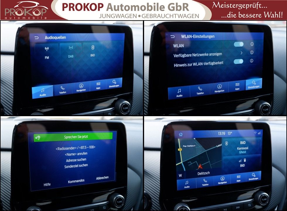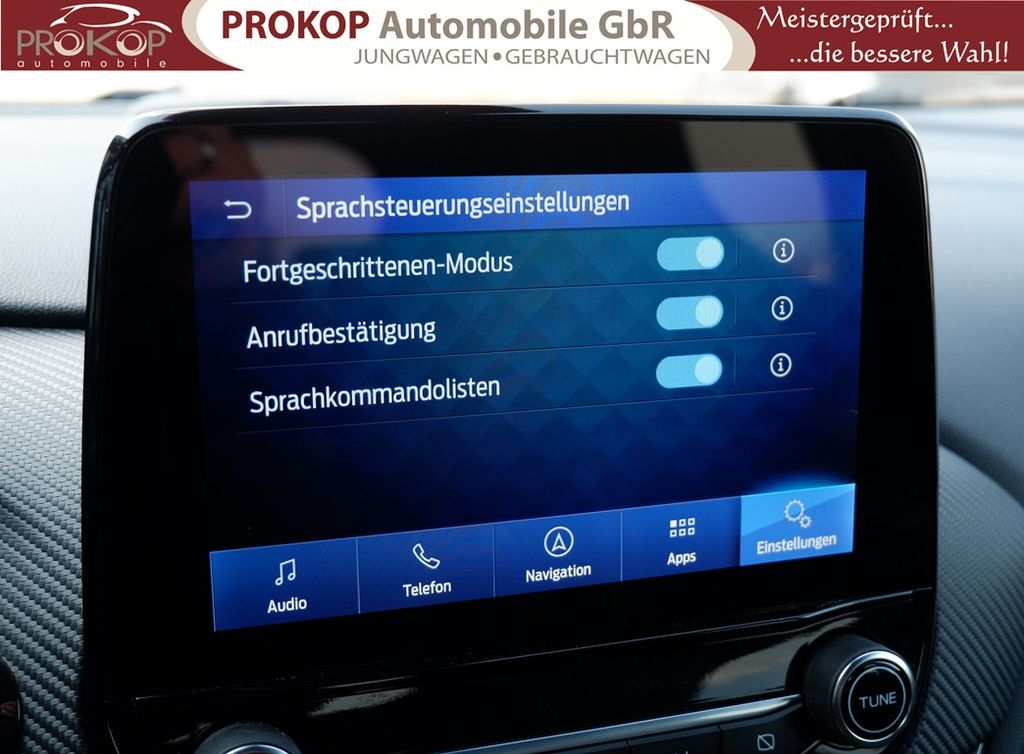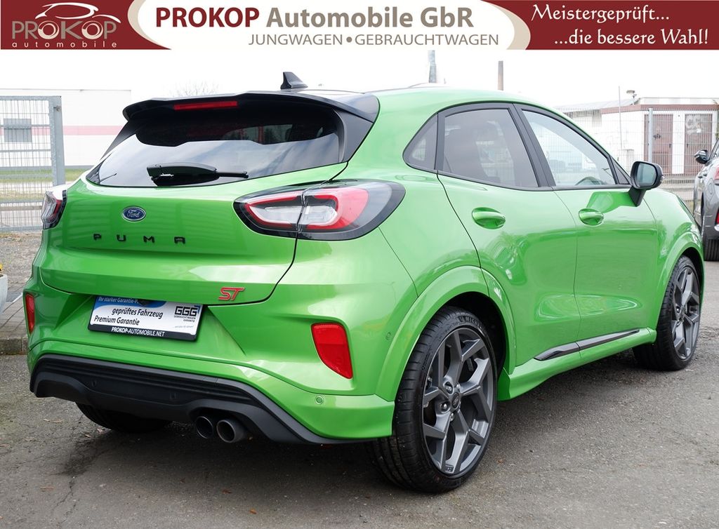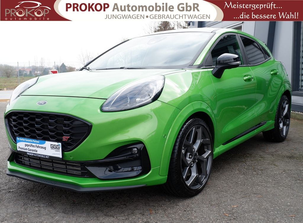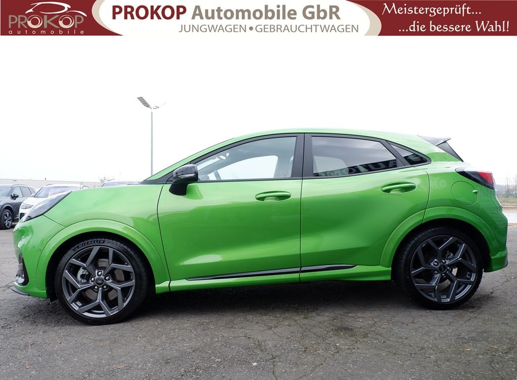 Ambiente-Beleuchtung vorn (LED), Antischlupfregelung (ASR), Audio-Navigationssystem Ford mit AppLink, Außenspiegel elektr. anklappbar, Außenspiegel elektr. verstell- und heizbar, Body-Styling-Paket, Dach andersfarbig lackiert / Kontrastfarbe, Dachhimmel Stoff, dunkel, Dachspoiler (große Ausführung) schwarz lackiert, Doppelendrohr Auspuffanlage, Eco-Anzeige für verbrauchsoptimiertes Fahren (EcoCoach), Einparkhilfe hinten, Fahrassistenz-System: Berganfahr-Assistent (Hill-Holder), Fahrassistenz-System: Falschfahrer-Warnfunktion, Fahrassistenz-System: Fernlichtassistent (Scheinwerfer mit Abblendautomatik), Fahrassistenz-System: Notbrems-Assistent, Fahrassistenz-System: Post-Collision-System, Fahrassistenz-System: Pre-Collision-System, Fahrassistenz-System: Spurhalteassistent mit Müdigkeitserkennungs-Sensor, Fahrassistenz-System: Totwinkel-Assistent, Cross Traffic Alert und Notbremsfunktion, Fahrassistenz-System: Verkehrsschildassistent, Farbdisplay für Bordcomputer, Fensterheber elektrisch vorn + hinten mit Komfortschließung, FordPass Connect inkl. eCall, Fußmatten ST-Design, Heckleuchten LED, Innenraumfilter: Staub- und Pollenfilter, Innenspiegel mit Abblendautomatik, Intelligent Protection System (IPS), Intelligenter Geschwindigkeits-Begrenzer, Isofix-Aufnahmen für Kindersitz, Karosserie: 5-türig, Kombiinstrument Digitalanzeige 12,3 Zoll, Kopfstützen hinten mechan. verstellbar (3 Stück), Laderaumboden variabel (Ford Megabox), Lendenwirbelstütze vorn, Lenkrad (Sport/Leder, ST), Lenksäule (Lenkrad) höhen-/längsverstellbar, LM-Felgen, Motor 1,5 Ltr. - 147 kW EcoBoost KAT, My Key (2. Fahrzeugschlüssel programmierbar), Nebelscheinwerfer LED, Otto-Partikelfilter (OPF), Parkpilotsystem vorn, Pedale Aluminium, Radstand 2588 mm, Reifen-Reparaturkit, Reifendruck-Kontrollsystem, Rücksitzlehne geteilt/klappbar (60:40), Schadstoffarm nach Abgasnorm Euro 6d, Scheinwerfer LED, Scheinwerfer-Assistent mit Tag-/Nachtsensor, Sonnenblende links mit Spiegel (beleuchtet), Sonnenblende rechts mit Spiegel (beleuchtet), Sport-Fahrwerk mit Spezial-Radaufhängung, Sportsitze vorn (Recaro) Teilleder, Start/Stop-Anlage, Türgriffe außen Wagenfarbe, Verglasung hinten abgedunkelt (Privacy Glass), Innenspiegel automatisch abblendend, Geschwindigkeitsbegrenzer mit vorausschauender Regelung, Regensensor