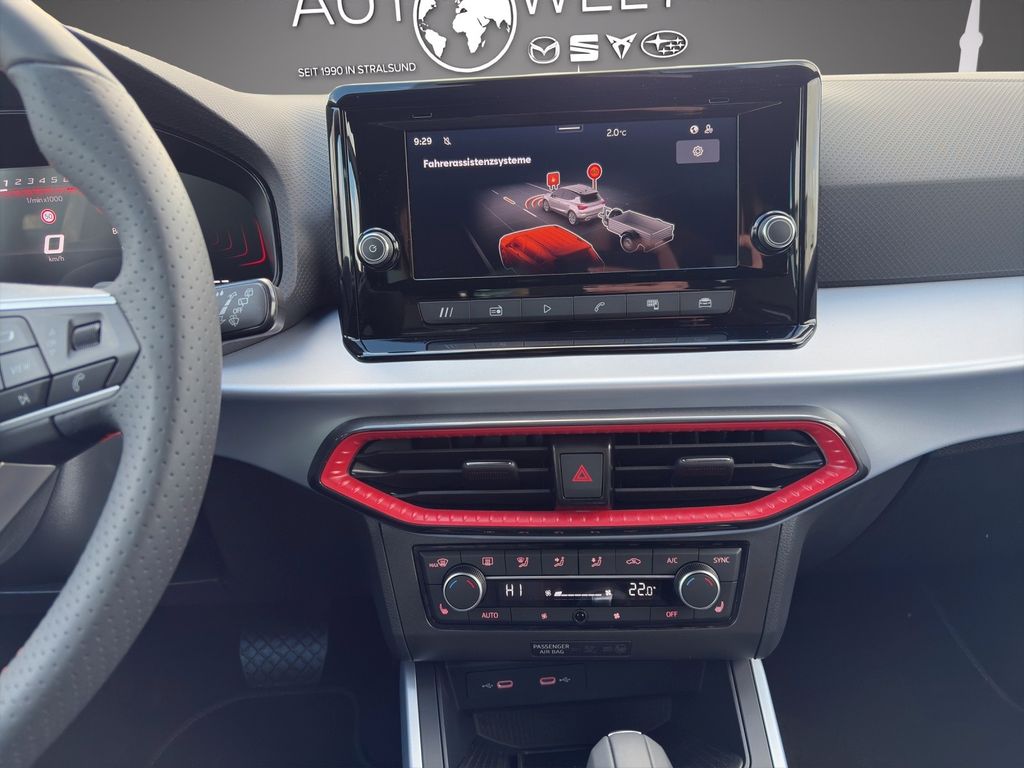 3. Bremsleuchte, Airbag Beifahrerseite abschaltbar, Airbag Fahrer-/Beifahrerseite, Ambiente-Beleuchtung LED, Antriebs-Schlupfregelung (ASR), Außenspiegel Dachfarbe, Außentemperaturanzeige, Bordcomputer, Bremsassistent, Chromleisten an Seitenfenstern, Dachhimmel schwarz, Dachreling, Einschaltautomatik für Fahrlicht, Elektr. Bremskraftverteilung, Elektron. Querdifferentialsperre (XDS), Fahrassistenz-System: Ablenkungs- und Müdigkeitserkennung, Fahrassistenz-System: Berganfahr-Assistent (Hill-Holder), Fahrassistenz-System: Fahrprofilauswahl (SEAT Drive Profile), Fahrassistenz-System: Multikollisionsbremse (Multi Collision Brake), Fahrassistenz-System: Spurhalteassistent, Fahrassistenz-System: Umfeldbeobachtungssystem (Front assist) mit City-Notbremsfunktion, Fahrassistenz-System: Verkehrszeichenerkennung, Fußraumbeleuchtung vorn LED, Gepäckraumabdeckung / Rollo, Gurtstraffer hinten, Heckleuchten LED, Heckscheibe heizbar, Heckscheibenwischer, Innenraumfilter: Pollenfilter, Isofix-Aufnahmen für Kindersitz, Karosserie: 5-türig, Klima-Komfort-Paket, Kofferraumbeleuchtung, Kombiinstrument digital (8 Zoll), Kopf-Airbag-System, Kopfstützen hinten, Kopfstützen vorn, Laderaumboden variabel und herausnehmbar, Lenkrad (Leder) mit Multifunktion, Lenksäule (Lenkrad) höhenverstellbar, Lenksäule (Lenkrad) verstellbar, LM-Felgen, Modellpflege, Motor 1,0 Ltr. - 85 kW TSI, Notrufsystem, Otto-Partikelfilter (OPF), Radstand 2566 mm, Reifendruck-Kontrollsystem, Reifenkontroll-Anzeige, Rücksitzlehne geteilt/klappbar (1/3-2/3), Schadstoffarm nach Abgasnorm Euro 6e, Scheinwerfer LED, SEAT Media-System Touch Colour, Seitenairbag, Sitze vorn höhenverstellbar, Sonnenblende links mit Spiegel (beleuchtet), Sonnenblende rechts mit Spiegel (beleuchtet), Sportsitze vorn, Sprachsteuerungs-System, Start/Stop-Anlage, Stoßfänger FR-Design, Türgriffe außen lackiert, Warnanlage für Sicherheitsgurt-System, Wärmeschutzverglasung