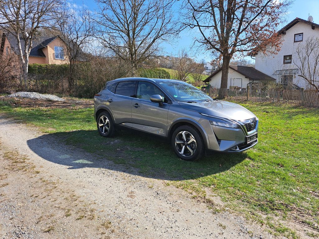 3. Bremsleuchte, Airbag Fahrer-/Beifahrerseite, Ambiente-Beleuchtung, Around View Monitor (360° Umgebungsansicht), Ausstattungs-Paket: Nissan Connect Navigationssystem mit Around View Monitor, Auto-Hold-Funktion, Automatische Fahrlichtschaltung, Außenspiegel elektr. anklappbar, Außenspiegel elektr. verstell- und heizbar, Blinkleuchten LED in Außenspiegel integriert, Dachantenne im Haifischflossen-Design, Dachhimmel hellgrau, Einparkhilfe vorn und hinten, Elektr. Bremskraftverteilung (EBD), Elektromotor 140 kW (Hybridantrieb), Fahrassistenz-System: aktiver Spurhalteassistent, mit korrigierendem Bremseingriff, Fahrassistenz-System: Auffahrwarnsystem (Forward Collision Warning, FCW), Fahrassistenz-System: Autonomer Notbrems-Assistent, Fahrassistenz-System: Berganfahr-Assistent, Fahrassistenz-System: Fernlichtassistent, Fahrassistenz-System: Moving Object Detection (MOD, Fußgängererkennung und bewegliche Objekterkennung), Fahrassistenz-System: Müdigkeitserkennungs-Sensor, Fahrassistenz-System: Querverkehrs-Assistent Heck (Rear Cross Traffic Alert, RCTA), Fahrassistenz-System: Sicherheitssystem ERA GLONASS mit automatischem Notruf, Fahrassistenz-System: Totwinkel-Assistent, Fahrassistenz-System: Verkehrszeichenerkennung, Fahrmodusschalter, Fensterheber elektrisch vorn + hinten, Gepäck-/Laderaum-Unterteilung (Flexi-Board), Geschwindigkeits-Begrenzeranlage, Geschwindigkeits-Regelanlage (Tempomat) mit Abstandsregelung, Handschuhfach beleuchtet, Heckleuchten LED, Innenraumfilter: Pollenfilter, Innenspiegel mit Abblendautomatik, Instrumentenanzeige TFT-Farbdisplay (12,3 Zoll), Isofix-Aufnahmen für Kindersitz, Karosserie: 5-türig, Klimaautomatik 2-Zonen, Kniepolster Mittelkonsole seitlich, Kofferraumbeleuchtung, Kopf-Airbag-System, Lastenverankerung / Verzurrösen, Lendenwirbelstütze Sitz vorn links, elektr. verstellbar, Lenksäule (Lenkrad) höhen-/längsverstellbar, Leseleuchten vorn und hinten, LM-Felgen, Mittelarmlehne hinten mit Getränkehalter, Motor 1,5 Ltr. - 116 kW (System: 140 kW) Range Extender, Multimedia-System Nissan Connect, Navigationssystem, Nebelscheinwerfer LED, Nebelschlussleuchte LED, Notbrems-Warnblinkautomatik, Otto-Partikelfilter (OPF), Parkbremse elektrisch, Radstand 2666 mm, Reifendruck-Kontrollsystem, Rückfahrkamera, Rücksitz geteilt/klappbar, Schadstoffarm nach Abgasnorm Euro 6d, Schalt-/Wählhebelgriff Leder, Scheibenwischer mit Intervallschaltung, Seitenairbag, Seitenairbag vorn mitte (Center-Airbag), Service-System: Amazon Alexa, Sitz vorn links höhenverstellbar, Sitz vorn rechts höhenverstellbar, Sitzbezug / Polsterung: Stoff/Kunstleder, Sonnenblenden mit Spiegel (beleuchtet), Start/Stop-Anlage, Steckdose (12V-Anschluß) im Koffer-/Laderaum, Steckdose (12V-Anschluß) in Mittelkonsole, USB-Anschluss im Fond, USB-Schnittstelle, Verglasung hinten abgedunkelt