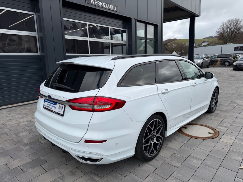 Entdecken Sie diesen gepflegten Ford Mondeo Kombi aus dem Jahr 2019. Der leistungsstarke Dieselmotor mit 179 PS und Automatikgetriebe bietet ein komfortables Fahrerlebnis bei gleichzeitig wirtschaftlichem Verbrauch. Der Frontantrieb und die umfangreiche Ausstattung machen diesen Mondeo zu einem idealen Begleiter für Alltag und längere Reisen.Das Fahrzeug präsentiert sich in elegantem Weiß mit schwarzem Lederinterieur und verfügt über ein Sportpaket mit Sportsitzen. Die Automatik-Klimaanlage, beheizbare Sitze und das Navigationssystem sorgen für höchsten Komfort. Besonders praktisch sind die Einparkhilfen vorne und hinten sowie die Rückfahrkamera. Mit einer Anhängelast von 1.800 kg (gebremst) bietet dieser Mondeo auch ausreichend Zugkraft.