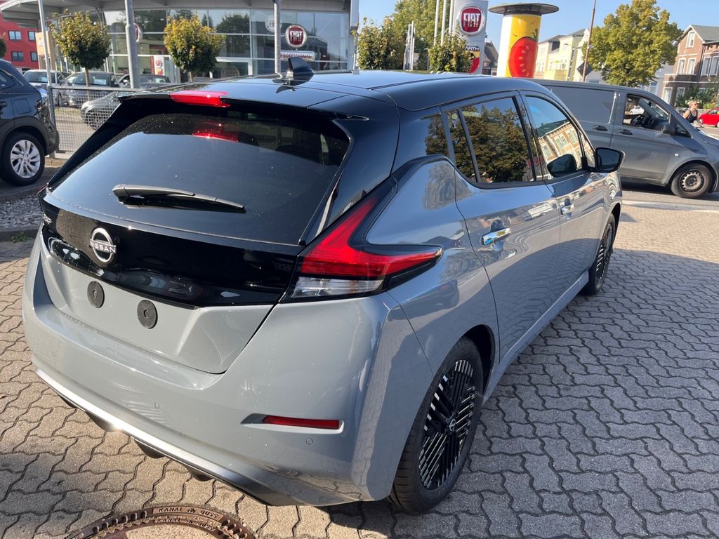 - Weiteres: Reifendruck-Kontrollsystem, Sitzbezug / Polsterung: Stoff, Schließ-/Startsystem intelligent key, Heckleuchten LED, Ambiente-Beleuchtung, Einparkhilfe hinten, Einparkhilfe vorn, LM-Felgen, Touchscreen-Farbdisplay (7,0 Zoll) in Mittelkonsole, Audiosystem: Radio mit MP3-Wiedergabefunktion, Scheibenwischer mit Regensensor, Around View Monitor (360° Umgebungsansicht), Innenraumfilter: Pollenfilter, Leuchtweitenregelung elektrisch, Scheinwerfer LED, Anti-Blockier-System (ABS), Tagfahrlicht LED, Lenksäule (Lenkrad) höhenverstellbar, Start-Stop-Knopf, Wegfahrsperre (elektronisch), Automatische Fahrlichtschaltung, Kopf-Airbag-System, USB-Schnittstelle, Wärmeschutzverglasung mit UV-Schutz, AUX-IN-Anschluss (AUX-IN), Rücksitz geteilt/klappbar, Airbag Beifahrerseite, Airbag Fahrerseite, Außenspiegel elektr. verstellbar, Seitenairbag, 12V-Steckdose, 2-Farben-Lackierung, aktiver Spurhalteassistent, mit korrigierendem Bremseingriff, Akustischer Umfeldschutz (Außensound), Audiobedienung am Lenkrad, Außenspiegel elektr. anklappbar, Außenspiegel Wagenfarbe, Außentemperaturanzeige, Ausstattungs-Paket: Nissan Connect EV, Autom. Begleitfunktion der Beleuchtung (Follow me home), Autom. Distanzregelung mit vorausschauender Geschw.-Regelung, Autonomer Lenk-Assistent für selbstständiges Spurhalten, Autonomer Notbrems-Assistent, Berg-Anfahr-Assistent, Blinkleuchte in Außenspiegel integriert, Bluetooth-Schnittstelle, Bremsassistent (Nissan Brake-Assist), B-Säulen Schwarz, Dachantenne im Haifischflossen-Design, Elektr. Bremskraftverteilung (EBD), Fahrer-Informations-System (FIS) mit Farbdisplay, Fensterheber elektrisch vorn und hinten, Fernlichtassistent, Freisprechanlage Bluetooth, Frontkamera, Fußgängererkennung, Getränkehalter hinten, Getränkehalter in Mittelkonsole, Getränkehalter vorn, Gurtstraffer, Handschuhfach beleuchtet, Heckscheibe heizbar, Innenspiegel mit Abblendautomatik, Isofix-Aufnahmen für Kindersitz, Kamerasystem Around View, Klimaautomatik, Kofferraumabdeckung, Ladevorrichtung Wechselstrom (bis 6,6 kW), Lederlenkrad, Lenkrad heizbar, Müdigkeitserkennungs-Sensor, Navigationssystem, Nebelscheinwerfer LED, Park-Assistent mit 360° Bewegungssensoren, Parkbremse elektrisch, Pedalerie elektr. einstellbar, Pro Pilot-Paket, Querverkehrs-Assistent Heck, Radioempfang Digital (DAB), Schnellladevorrichtung, Servolenkung elektronisch, Sitzheizung vorn und hinten, Sitzhöhenverstellung Fahrersitz, Smartphone Schnittstelle, Spurhalteassistent, Spurwechselassistent, Stauassistent inkl. Stop&Go-Funktion, Totwinkel-Assistent, Verglasung hinten abgedunkelt, Verkehrszeichenerkennung, Winter-Paket, ZV mit Fernbedienung