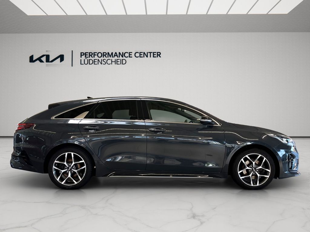 Dieser gepflegte KIA ProCeed aus dem Jahr 2020 präsentiert sich in elegantem Grau-Metallic mit schwarzer Teillederausstattung. Der 140 PS starke Benzinmotor mit 1.353 ccm Hubraum bietet sportliche Fahrleistungen bei gleichzeitiger Effizienz (Euro 6d). Das Fahrzeug verfügt über ein manuelles Schaltgetriebe und Frontantrieb. Mit nur einem Vorbesitzer und lückenloser Servicehistorie ist dieser ProCeed ein zuverlässiger Begleiter.Die umfangreiche Ausstattung umfasst ein Panorama-Glasdach, 2-Zonen-Klimaautomatik, Navigationssystem, Apple CarPlay und Android Auto. Für Komfort sorgen beheizbare Sitze vorne und hinten, elektrisch verstellbare Sitze mit Memory-Funktion, Lenkradheizung und eine elektrische Heckklappe. Zahlreiche Sicherheitssysteme wie Spurhalteassistent, Kollisionsvermeidung, Verkehrszeichenerkennung und Fernlichtassistent sind ebenfalls an Bord.