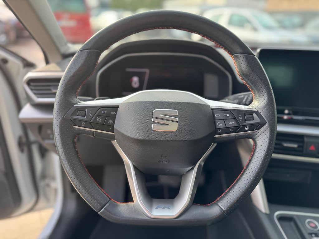 6 Lautsprecher, Ablagetasche an Vordersitzlehnen, Airbag Beifahrerseite abschaltbar, Airbag Fahrer-/Beifahrerseite, Antriebs-Schlupfregelung (ASR), Außenspiegel elektr. verstell-, heiz- und anklappbar mit Spiegelabsenkung, Außenspiegel grau, Blinkleuchten LED in Außenspiegel integriert, Bluetooth-Schnittstelle mit Freisprecheinrichtung integriert, Bordcomputer, Doppeltonhorn, Einstiegsleisten beleuchtet, Elektron. Querdifferentialsperre (XDS), Fahrassistenz-System: Fahrprofilauswahl (SEAT Drive Profile), Fahrassistenz-System: Müdigkeitserkennung, Fahrassistenz-System: Spurhalteassistent, Fahrassistenz-System: Umfeldbeobachtungssystem (Front assist) mit City-Notbremsfunktion, Fensterheber elektrisch vorn + hinten mit Komfortschaltung, Gepäckraumabdeckung / Rollo, Handschuhfach beleuchtet, Heckleuchten Voll-LED mit dynamischem Lichtband (Infinite Light), Innenraumlicht-Paket LED, Isofix-Aufnahmen für Kindersitz, Karosserie: 5-türig, Klimaanlage Climatronic 3-Zonen, Kofferraumbeleuchtung, Kombiinstrument digital (virtual cockpit), Kopf-Airbag-System, Lendenwirbelstütze Sitz vorn links, verstellbar, Lendenwirbelstütze Sitz vorn rechts, verstellbar, Lenkrad (Sport/Leder) mit Multifunktion, Mobile Online Dienste Seat Connect, Motor 2,0 Ltr. - 110 kW TDI, Nebelscheinwerfer LED mit Abbiegelicht, Notrufsystem, Parkbremse elektrisch mit Auto-Hold-Funktion, Radioempfang digital (DAB+), Reifenkontroll-Anzeige, Rücksitzlehne geteilt/klappbar (1/3-2/3), Schadstoffarm nach Abgasnorm Euro 6d-TEMP, Schalt-/Wählhebelgriff Leder, Scheinwerfer LED, Seitenairbag, Seitenscheiben hinten und Heckscheibe abgedunkelt, Sitz vorn links höhenverstellbar, Sitz vorn rechts höhenverstellbar, Sitzbezug / Polsterung: Stoff, Sport-Fahrwerk, Sport-Komfortsitze vorn, Start/Stop-Anlage, Steckdose (12V-Anschluß) vorn, Stoßfänger FR-Design, USB-Schnittstelle vorn (2-fach, Typ C), Verzurrösen Koffer-/Laderaum, Warnanlage für Sicherheitsgurt-System, Wärmeschutzverglasung