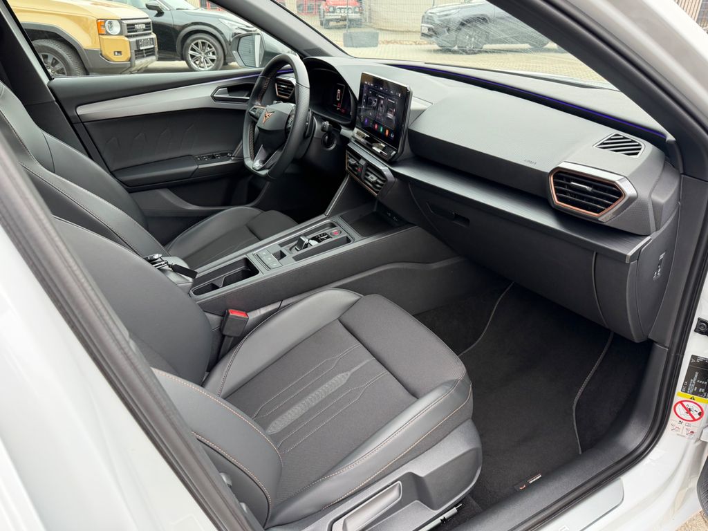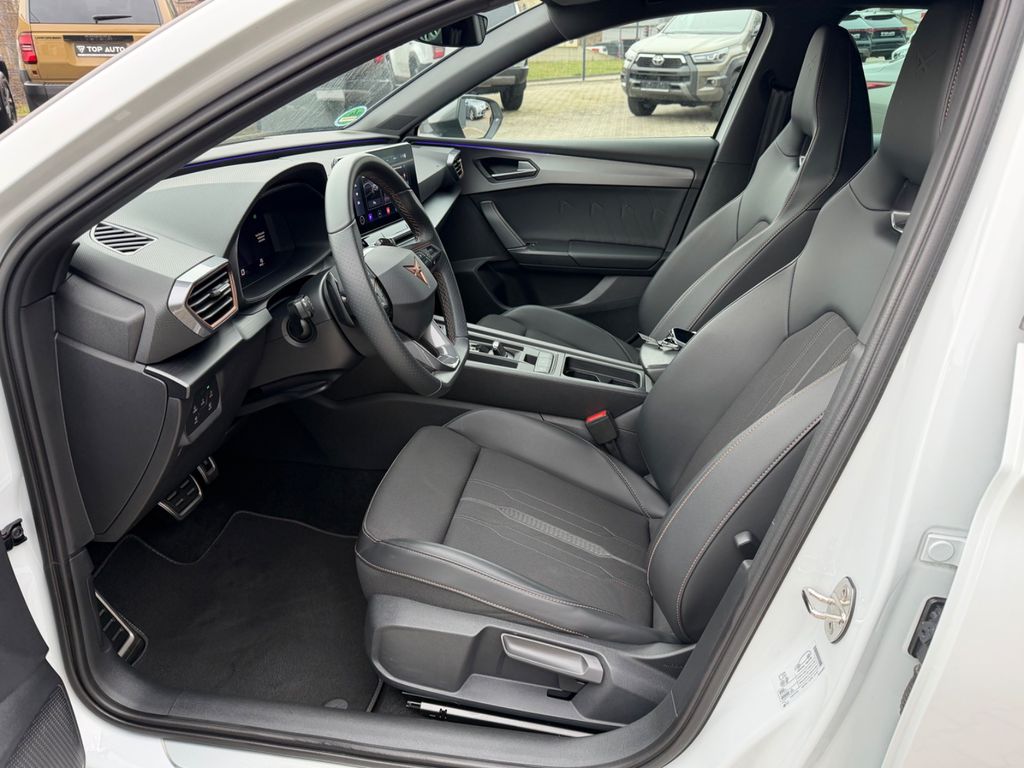 6 Lautsprecher, Airbag Beifahrerseite abschaltbar, Airbag Fahrer-/Beifahrerseite, Antriebs-Schlupfregelung (ASR), Außenspiegel elektr. verstell-, heiz- und anklappbar mit Spiegelabsenkung und Welcome Light, Blinkleuchten LED in Außenspiegel integriert, Differentialsperre (Vorderachse), Doppeltonhorn, Einparkhilfe hinten, Einstiegsleisten (Aluminium) vorn, beleuchtet, Fahrassistenz-System: Fahrprofilauswahl (CUPRA Drive Profile), Fensterheber elektrisch vorn + hinten mit Komfortschaltung, Fensterzierleisten schwarz hochglänzend, Gepäckraumabdeckung / Rollo, Heckleuchten LED mit dynamischem Blinklicht, Heckleuchten Voll-LED mit dynamischem Lichtband (Infinite Light), Isofix-Aufnahmen für Kindersitz an Rücksitz, Karosserie: 5-türig, Klimaanlage Climatronic 3-Zonen, Kombiinstrument digital (virtual cockpit), Kopf-Airbag-System, Lendenwirbelstütze Sitz vorn links, verstellbar, Lendenwirbelstütze Sitz vorn rechts, verstellbar, Licht- und Sicht-Paket, LM-Felgen, Mittelkonsole vorn mit Mittelarmlehne, Becherhalter, Ablagebox und Luftausströmer hinten, Mobile Online Dienste Cupra Connect, Motor 2,0 Ltr. - 180 kW TSI, Notrufsystem, Otto-Partikelfilter (OPF), Parkbremse elektrisch, Radioempfang digital (DAB+), Rücksitzlehne geteilt/klappbar (1/3-2/3), Schadstoffarm nach Abgasnorm Euro 6d, Seitenairbag, Seitenairbag vorn mitte (Central Airbag), Seitenscheiben hinten und Heckscheibe abgedunkelt, Sitz vorn links höhenverstellbar, Sitz vorn rechts höhenverstellbar, Sitzbezug / Polsterung: Stoff, Sonnenblende links mit Spiegel (beleuchtet), Sonnenblende rechts mit Spiegel (beleuchtet), Sport-Schalensitze vorn mit integrierten Kopfstützen, Sprachsteuerungs-System, Start/Stop-Anlage, USB-Ladeanschlüsse (2-fach, Typ C) für 2.Sitzreihe, USB-Schnittstelle vorn (2-fach, Typ C), Verzurrösen Koffer-/Laderaum, Warnanlage für Sicherheitsgurt-System, Wärmeschutzverglasung