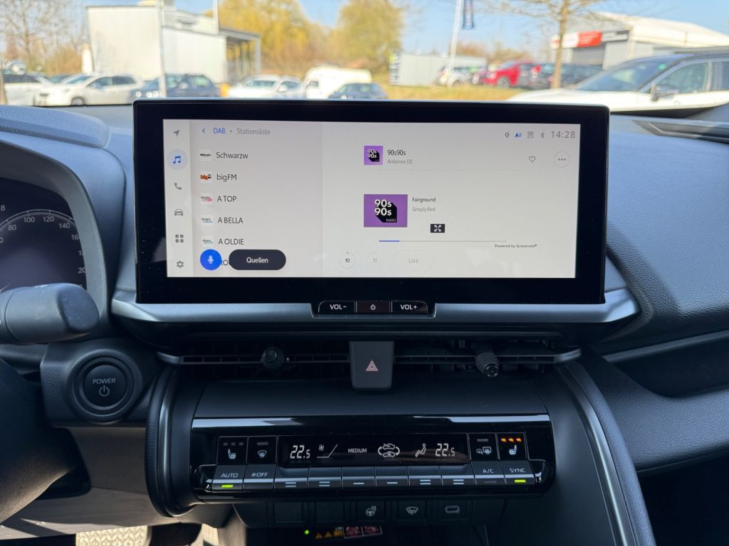 - Radio: Toyota Smart Connect mit Cloud- und Onboard-Navigation - 12,3'-Farbmonitor mit Touchscreen-Funktion, hochauflösend - Bluetooth-Audiostreaming - USB-Schnittstelle vorn u. hinten - RDS-Radio / DAB+ Radio - Smartphone-Integration (Apple Car Play und Android Auto) - Smart Voice Assistant (Sprachsteuerung) - Europakarte, wahlweise 2D- oder 3D-Kartenansicht - 3 Jahre kostenlose Kartenupdates (ab Kaufdatum) - Fahrinformationen (Durchschnittsgeschwindigkeit, Reichweite, Verbrauch) - Ladefunktion für mobile Geräte über USB-Schnittstelle