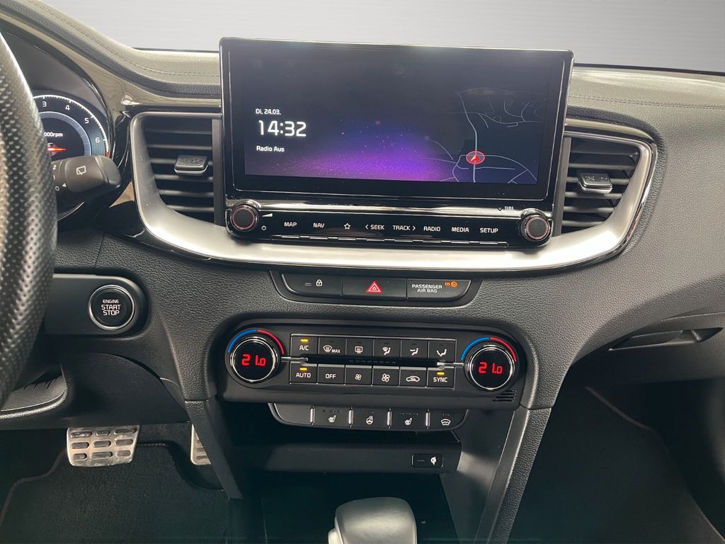 Dieser gebrauchte KIA ProCeed Sportcoupé aus 2021 vereint sportliche Eleganz mit modernster Technologie. Der 204 PS starke Benziner mit Frontantrieb und Automatikgetriebe bietet ein dynamisches Fahrerlebnis, unterstützt durch das Sportpaket und Sportsitze. Die weiße Metallic-Lackierung harmoniert perfekt mit dem teilweise in Leder ausgeführten schwarzen Interieur. Mit nur drei Vorbesitzern und der umweltfreundlichen Euro-6d-Einstufung ist dieses Fahrzeug eine attraktive Wahl.Die Ausstattung lässt kaum Wünsche offen: Das digitale Cockpit mit Touchscreen, Navigationssystem und DAB-Radio sorgt für Infotainment auf höchstem Niveau. Apple CarPlay und Android Auto sind ebenso integriert wie Bluetooth und Sprachsteuerung. Die 2-Zonen-Klimaautomatik, beheizte Sitze vorne und hinten sowie das Winterpaket garantieren Komfort zu jeder Jahreszeit.