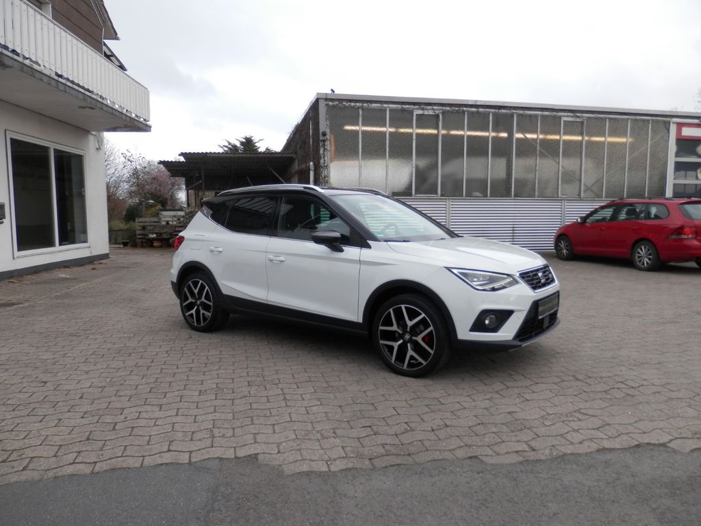 3. Bremsleuchte, Airbag Beifahrerseite abschaltbar, Airbag Fahrer-/Beifahrerseite, Ambiente-Beleuchtung LED, Antriebs-Schlupfregelung (ASR), Armaturentafel Leder-Optik, Außenspiegel Dachfarbe, Außentemperaturanzeige, Bordcomputer, Bremsassistent, Chromleisten an Seitenfenstern, Dachhimmel schwarz, Dachreling, Einschaltautomatik für Fahrlicht, Elektr. Bremskraftverteilung, Elektron. Querdifferentialsperre (XDS), Fahrassistenz-System: Berganfahr-Assistent (Hill-Holder), Fahrassistenz-System: Fahrprofilauswahl (SEAT Drive Profile), Fahrassistenz-System: Multikollisionsbremse (Multi Collision Brake), Fahrassistenz-System: Umfeldbeobachtungssystem (Front assist) mit City-Notbremsfunktion, Gepäckraumabdeckung / Rollo, Heckleuchten LED, Heckscheibe heizbar, Heckscheibenwischer, Innenausstattung: Chrom-Applikationen, Innenraumfilter: Pollenfilter, Isofix-Aufnahmen für Kindersitz, Karosserie: 5-türig, Klima-Komfort-Paket, Kofferraumbeleuchtung, Kopf-Airbag-System, Kopfstützen hinten, Kopfstützen vorn, Lenkrad (Leder) mit Multifunktion, Lenksäule (Lenkrad) höhenverstellbar, Lenksäule (Lenkrad) verstellbar, Motor 1,0 Ltr. - 85 kW TSI, Otto-Partikelfilter (OPF), Radstand 2566 mm, Reifendruck-Kontrollsystem, Reifenkontroll-Anzeige, Rücksitzlehne geteilt/klappbar (1/3-2/3), Schadstoffarm nach Abgasnorm Euro 6d-TEMP, Seitenairbag, Sitze vorn höhenverstellbar, Sprachsteuerungs-System, Start/Stop-Anlage, Steckdose (12V-Anschluß) vorn, Stoßfänger FR-Design, Türgriffe außen lackiert, Wärmeschutzverglasung