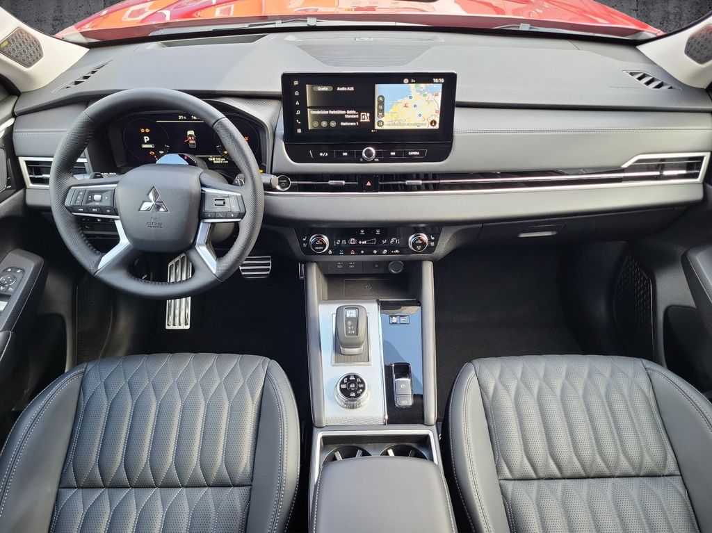 Klimatisierung/Audio- und Kommunikationssystem: Bluetooth-Freisprecheinrichtung, DAB+, Dynamic Sound Yamaha Premium mit 8 Lautsprecher, Klimaautomatik 2-Zonen, MITSUBISHI REMOTE System (Steuerung via Smartphone App) zur drathlosen Interaktion zwischen Fahrer und geparktem Fahrzeug, Tomtom Navigationssystem mit Smartphone-Anbindung, Android und AppleCar Play kabellos, 12,3 Zoll Touchscreen und Radio, Vernetzte Google-Navigationsdienste,