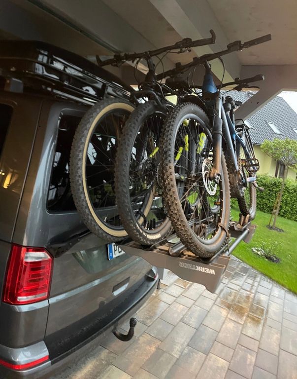 - Auffahrtkeile zweimal, direkt am Fahrradträger montiert (mit zwei Schrauben abnehmbar)