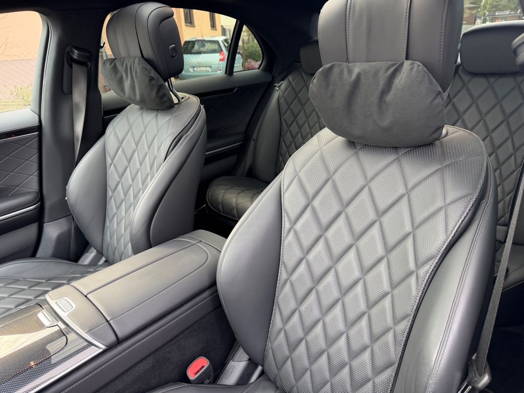 Ambiente-Beleuchtung, Aktive, Ausstattungs-Paket USB Plus, Einstiegsleisten beleuchtet, Head-up-Display (Frontsichtanzeige), Hinterachslenkung 4,5° Lenkwinkelanpassung, Innenausstattung: Zierteile Metall-Mischgewebe, Innenhimmel schwarz, Kraftstofftank: vergrößert, LM-Felgen vorn/hinten: 9x21 / 10x21 (AMG, 5-Doppelspeichen, schwarz), Mittelkonsole Metall-Mischgewebe Optik, schwarz silber, Night-Paket, Panorama-Schiebedach, Park-Paket mit 360° Kamera, Reifen-Reparaturset (Tirefit), Seitenscheiben hinten und Heckscheibe abgedunkelt, Sitzbezug / Polsterung: Leder Nappa, Sitze vorn: Klimatisierung, Sound-System mit Soundpersonalisierung, Surround-System Burmester, Zusatzheizung (Standheizung)