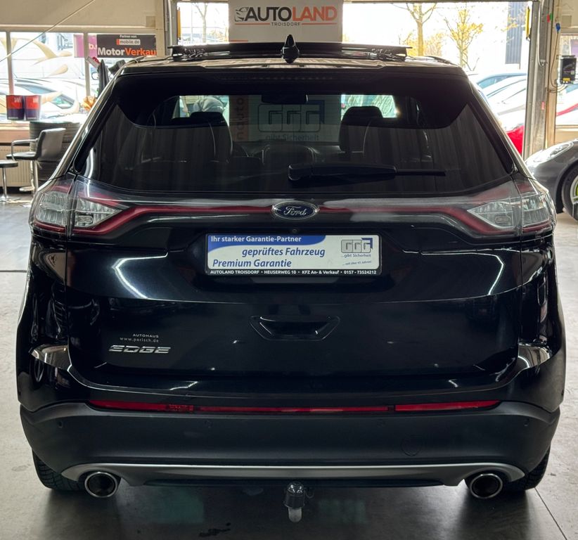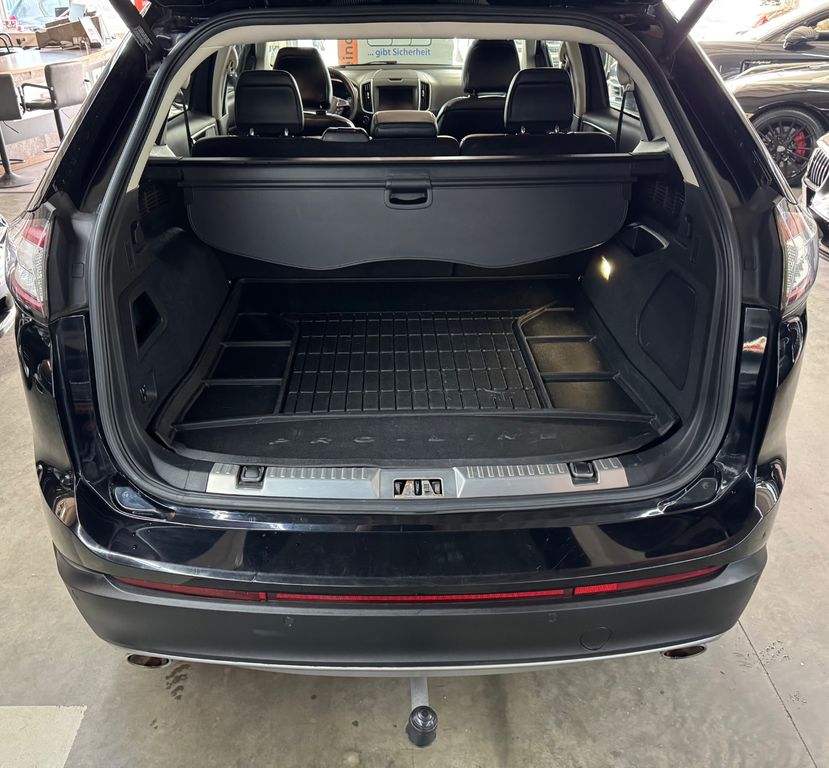 Dieser gepflegte Ford Edge SUV aus 2016 bietet ein umfassendes Paket an Komfort und Sicherheit. Der 209 PS starke Dieselmotor mit Allradantrieb und Automatikgetriebe sorgt für souveräne Fahrleistungen bei gleichzeitiger Erfüllung der Euro 6 Norm. Die schwarze Metallic-Lackierung harmoniert perfekt mit dem schwarzen Lederinterieur. Besonders hervorzuheben sind das Panorama-Glasdach, die elektrische Heckklappe und die umfangreichen Fahrassistenzsysteme wie adaptiver Tempomat, Spurhalteassistent und Verkehrszeichenerkennung. Die Ausstattung umfasst zudem ein Navigationssystem, Touchscreen, Bluetooth und WLAN-Hotspot. Für zusätzlichen Komfort sorgen die elektrisch verstellbaren und beheizbaren Sitze, die Ambientbeleuchtung sowie die Lenkradheizung. Das Fahrzeug verfügt über eine lückenlose Servicehistorie und eine gültige Garantie.- Allradantrieb mit 209 PS Dieselmotor und Automatikgetriebe