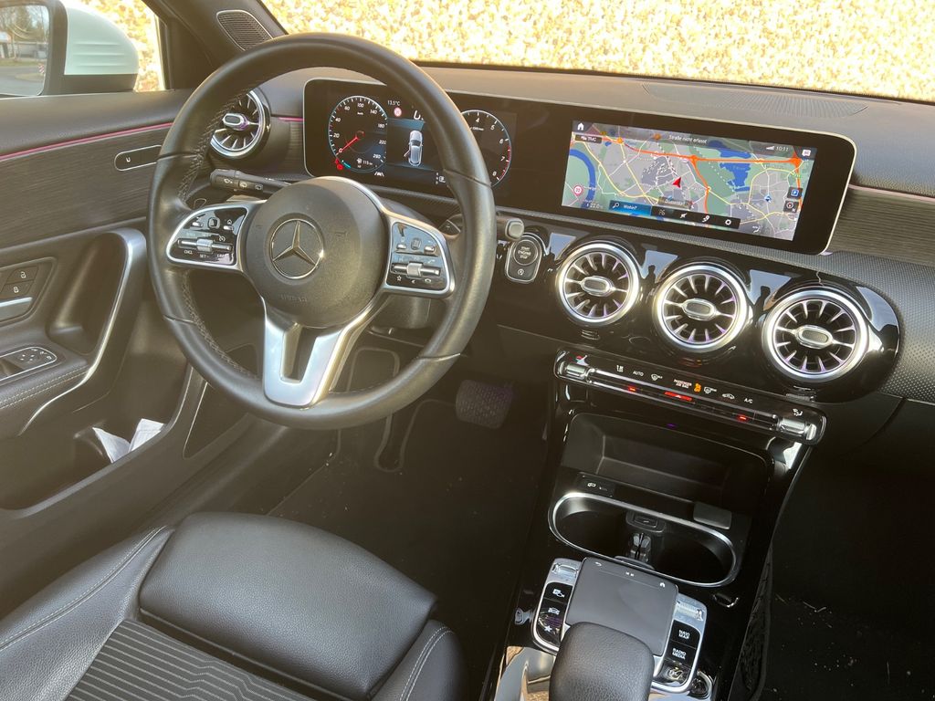 Dieser gepflegte Mercedes-Benz A 250 Limousine aus dem Jahr 2018 präsentiert sich in elegantem Weiß-Metallic mit schwarzer Teilledersportausstattung. Der 224 PS starke Vierzylinder-Benziner mit Frontantrieb bietet dynamische Fahrleistungen bei gleichzeitig modernem Umweltstandard (Euro 6, grüne Umweltplakette). Das Automatikgetriebe sorgt für komfortables Fahren im Stadtverkehr und auf der Autobahn. Mit nur zwei Vorbesitzern und lückenloser Servicehistorie ist dieser A 250 ein zuverlässiger Begleiter für den Alltag. Die umfangreiche Ausstattung umfasst ein digitales Cockpit mit Touchscreen, Navigationssystem, Apple CarPlay und Android Auto. Sicherheit wird durch zahlreiche Assistenzsysteme wie Spurhalteassistent, Kollisionsvermeidung und adaptives Kurvenlicht gewährleistet. Das Sportpaket verleiht dem Fahrzeug nicht nur optisch einen dynamischen Charakter, sondern bietet auch Sportfahrwerk und Sportsitze.- LED-Scheinwerfer mit adaptivem Kurvenlicht