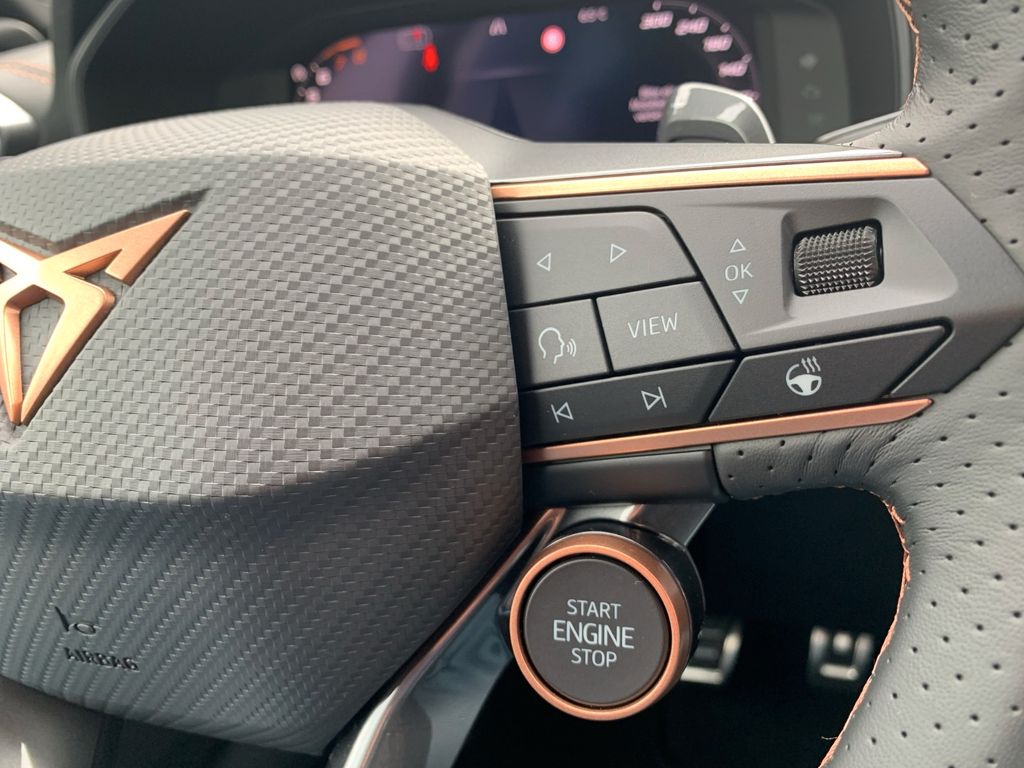 6 Lautsprecher, Abdeckkappen Außenspiegel Schwarz, Airbag Beifahrerseite abschaltbar, Airbag Fahrer-/Beifahrerseite, Außenspiegel elektr. verstell-, heiz- und anklappbar mit Spiegelabsenkung und Welcome Light, Connectivity-Box, Dachhimmel schwarz, Dachreling schwarz, hochglänzend, Differentialsperre (Vorderachse), Einparkhilfe vorn und hinten, Einstiegsleisten vorn beleuchtet, Elektron. Differentialsperre (XDS), Fahrassistenz-System: Fahrprofilauswahl (CUPRA Drive Profile), Fensterheber elektrisch vorn + hinten mit Komfortschaltung, Fensterzierleisten schwarz, Full Link (MirrorLink, Apple CarPlay und Android Auto), Gepäck-/Laderaumboden doppelt, Gepäckraumabdeckung / Rollo, Gepäckraumbeleuchtung (LED), Handschuhfach mit LED-Beleuchtung, Innenausstattung: Interieurleisten Copper, Isofix-Aufnahmen für Kindersitz an Beifahrersitz und Rücksitz (inkl. i-Size-Kindersitze), Karosserie: 5-türig, Klimaanlage Climatronic 3-Zonen, Kombiinstrument digital (virtual cockpit), Kopf-Airbag-System, Kopfstützen hinten (3-fach), Ladekabel mit Schukostecker, Lendenwirbelstütze Sitz vorn links, verstellbar, Lendenwirbelstütze Sitz vorn rechts, verstellbar, Leseleuchten hinten LED, Leseleuchten vorn LED, Licht- und Sicht-Paket, Media-System Plus, Mild-Hybrid 110 kW (Motor 1,5 Ltr. - 110 kW eTSI), Modellpflege, Notrufsystem, Otto-Partikelfilter (OPF), Parkbremse elektrisch mit Auto-Hold-Funktion, Radioempfang digital (DAB+), Radstand Standard, Reifen-Reparaturset, Rücksitzlehne geteilt/klappbar mit Mittelarmlehne und Durchladeeinrichtung, Rücksitzlehnen umklappbar mit Fernentriegelung im Kofferraum, Schadstoffarm nach Abgasnorm Euro 6e, Seitenairbag, Seitenairbag vorn mitte (Central Airbag), Seitenscheiben ab 2.Sitzreihe und Heckscheibe dunkel getönt (Privacy Glass), Seitenscheiben hinten und Heckscheibe abgedunkelt, Sitz vorn links höhenverstellbar, Sitz vorn rechts höhenverstellbar, Sonnenblende links mit Spiegel (beleuchtet), Sonnenblende rechts mit Spiegel (beleuchtet), Start/Stop-Anlage, Steckdose 230V im Gepäckraum, USB-Ladeanschlüsse (2-fach, Typ C) für 2.Sitzreihe, USB-Schnittstelle vorn (2-fach, Typ C), Verzurrösen Koffer-/Laderaum, Voll-LED-Paket, Warnanlage für Sicherheitsgurt-System, Wärmeschutzverglasung
