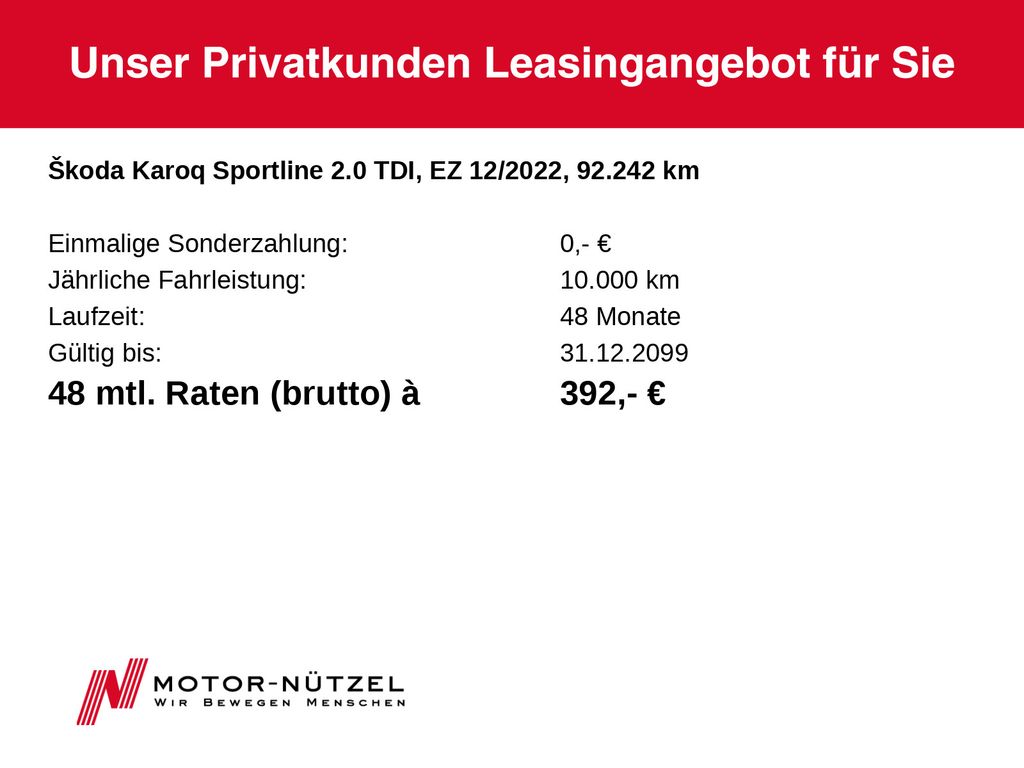 Die angegebenen Verbrauchsangaben beziehen sich auf WLTP-Werte. Zwischenverkauf und Irrtümer für dieses Angebot sind ausdrücklich vorbehalten. Ausschlaggebend sind einzig und allein die Vereinbarungen in der Auftragsbestätigung oder im Kaufvertrag. Den genauen Ausstattungsumfang, die genauen Kilometer und den Verkaufspreis erhalten Sie von unserem Verkaufspersonal. Bitte kontaktieren Sie uns.