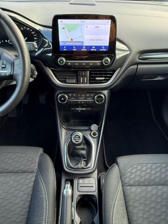 Ambiente-Beleuchtung vorn (LED), Antischlupfregelung (ASR), Audio-Navigationssystem Ford mit AppLink, Außenspiegel elektr. verstell- und heizbar, Blinkleuchte in Außenspiegel integriert, Body-Styling-Paket, Bordcomputer, Dachhimmel Stoff, Eco-Anzeige für verbrauchsoptimiertes Fahren (EcoCoach), Einparkhilfe hinten, Fahrassistenz-System: Berganfahr-Assistent (Hill-Holder), Fahrassistenz-System: Falschfahrer-Warnfunktion, Fahrassistenz-System: Fernlichtassistent (Scheinwerfer mit Abblendautomatik), Fahrassistenz-System: Notbrems-Assistent, Fahrassistenz-System: Post-Collision-System, Fahrassistenz-System: Pre-Collision-System, Fahrassistenz-System: Spurhalteassistent mit Müdigkeitserkennungs-Sensor, Fahrassistenz-System: Verkehrsschildassistent, Fensterheber elektrisch vorn + hinten mit Komfortschließung, FordPass Connect inkl. eCall, Fußmatten Teppich, Getriebe 6-Gang - Typ: 6MX65, Heckleuchten LED, Induktionsladeschale für mobile Endgeräte, Innenraumfilter: Staub- und Pollenfilter, Intelligent Protection System (IPS), Intelligenter Geschwindigkeits-Begrenzer, Isofix-Aufnahmen für Kindersitz, Karosserie: 5-türig, Kopfstützen hinten mechan. verstellbar (3 Stück), Laderaumboden variabel (Ford Megabox), Lendenwirbelstütze Sitz vorn links, Lenksäule (Lenkrad) höhen-/längsverstellbar, LM-Felgen, Mild-Hybrid 92 kW (Motor 1,0 Ltr. - 92 kW EcoBoost), My Key (2. Fahrzeugschlüssel programmierbar), Nebelscheinwerfer LED, Otto-Partikelfilter (OPF), Radstand 2588 mm, Reifen-Reparaturkit, Reifendruck-Kontrollsystem, Rücksitzlehne geteilt/klappbar (60:40), Schadstoffarm nach Abgasnorm Euro 6d-TEMP, Scheinwerfer LED, Scheinwerfer-Assistent mit Tag-/Nachtsensor, Sitze vorn höhenverstellbar, Sitze vorn mit Massagefunktion, Sonnenblende links mit Spiegel (beleuchtet), Sonnenblende rechts mit Spiegel (beleuchtet), Sportsitze vorn, Standard Variante, Start/Stop-Anlage, Türgriffe außen Wagenfarbe