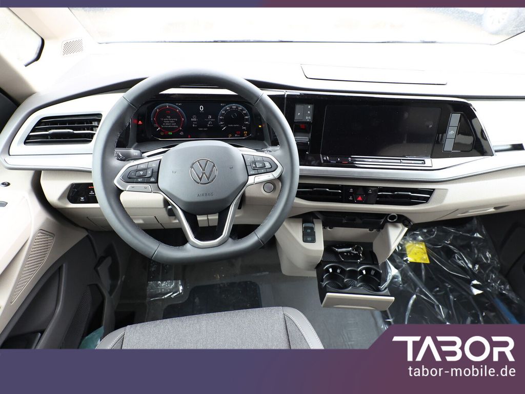 Getriebe 7-Gang - Doppelkupplungsgetriebe DSG, Markise (Gehäuse und Markisenleisten schwarz, links), Park-Paket Basic, Rückfahrkamera, Fahrassistenz-System: Parklenkassistent (Park Assist) inkl. Einparkhilfe vorn und hinten, Schließ-/Startsystem Keyless Advanced mit Safesicherung, Diebstahl-Warnanlage + Innenraumüberwachung / Abschleppschutz + Back-up-Horn, Insassen-Schutzsystem proaktiv, Adaptive Cruise Control (ACC), Scheinwerfer LED, LM-Felgen 16 Zoll, Klimaanlage Climatronic 3-Zonen inkl. Fondbedienung, Innenbeleuchtung an Aufstelldach, Heckklappe und Sommerküche (Coast / Ocean), Audiosystem Ready 2 Discover (Touchscreen-Farbdisplay 10", inkl. Streaming & Internet), Fahrassistenz-System: Spurwechselsystem (Side Assist) mit Ausstiegswarnung, Toter-Winkelassistent, Ablenkungs- und Müdigkeitserkennung, Notbrems-Assistent (Front Assist) inkl. Fußgänger- und Fahrraderkennung, Spurhalteassistent (Lane Assist), Ausweich-Assistent und Abbiege-AssistentFunkschlüssel (2)