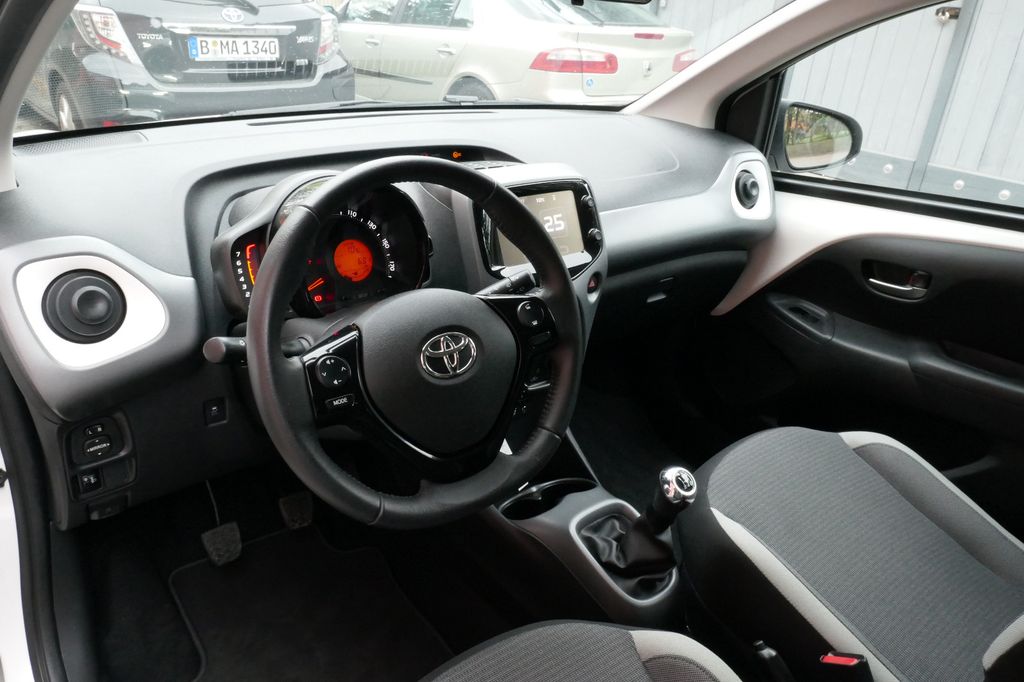 3. Bremsleuchte, Airbag Beifahrerseite abschaltbar, Airbag Fahrer-/Beifahrerseite, Audiosystem: Multimedia Toyota x-touch mit Rückfahrkamera, Außenspiegel elektr. verstell- und heizbar, Außenspiegel lackiert, Außentemperaturanzeige, Bordcomputer, Bremsassistent, Drehzahlmesser, Elektr. Bremskraftverteilung, Fahrassistenz-System: Berganfahrkontrolle (HAC), Frontgrill X-Element, Pianolack, Frontgrill X-Verlängerung, mattschwarz, Gepäckraumabdeckung / Rollo, Heckscheibe heizbar, Heckscheibenwischer, Heckschürze, schwarz matt, Innenausstattung: Anthrazit, Isofix-Aufnahmen für Kindersitz, Karosserie: 5-türig, Kopf-Airbag-System, Lenksäule (Lenkrad) höhenverstellbar, Modellpflege, Motor 1,0 Ltr. - 53 kW KAT, Reifen-Reparaturkit, Reifendruck-Kontrollsystem, Rücksitz geteilt, Rücksitz klappbar, Schadstoffarm nach Abgasnorm Euro 6d, Schalt-/Wählhebelgriff Leder, Seitenairbag vorn, Service-System: MyT-Connected Services, Sitz vorn links höhenverstellbar, Smartphone-Integration x-connect (Apple CarPlay und Android Auto), Steckdose (12V-Anschluß) in Mittelkonsole, Stoßfänger Wagenfarbe, Türgriffe außen Wagenfarbe, Türgriffe innen verchromt, Warnanlage für Sicherheitsgurte hinten, Warnanlage für Sicherheitsgurte vorn, Wärmeschutzverglasung getönt, X-business-Paket