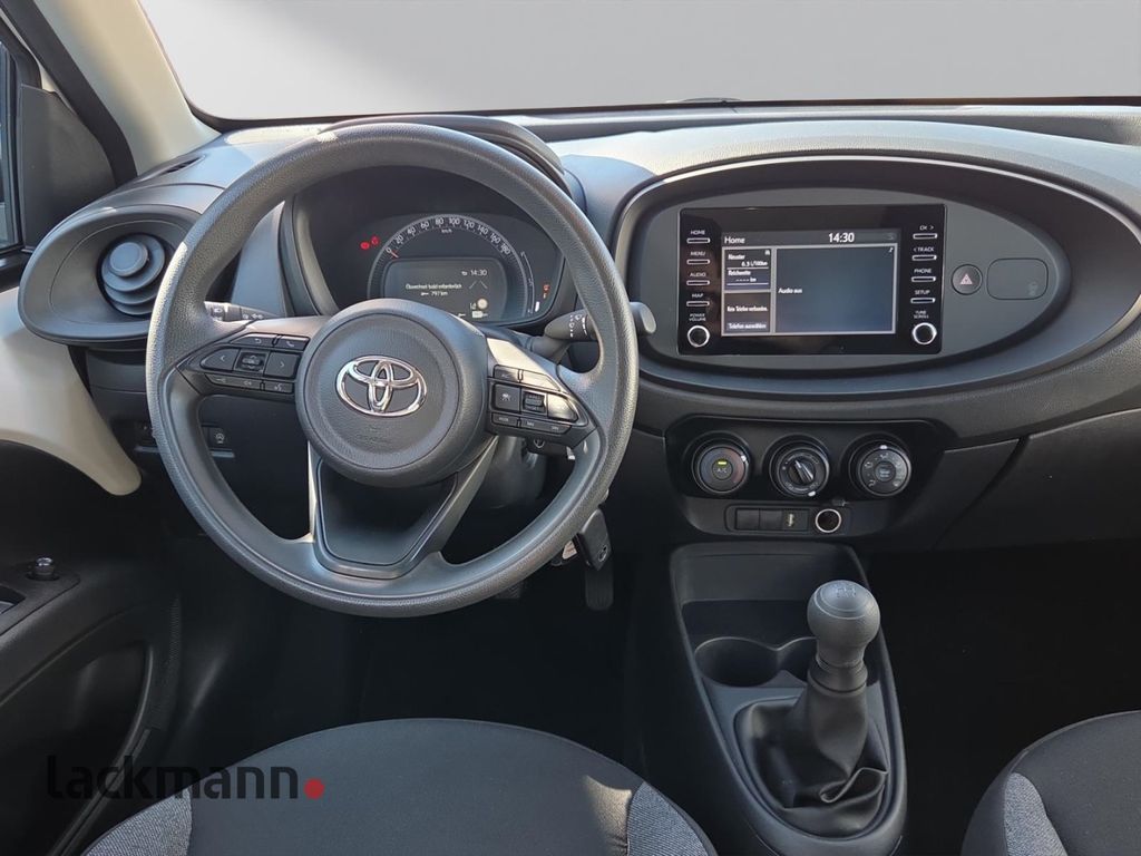 - Weiteres: Klimaanlage, Reifendruck-Kontrollsystem, Reifen-Reparaturkit, Schadstoffarm nach Abgasnorm Euro 6d, Innenraumfilter: Staub- und Pollenfilter mit Aktivkohlefilter, Rücksitz klappbar, Toyota Safety Sense, Zentralverriegelung mit Fernbedienung, Audiosystem: Multimedia Toyota Touch, Airbag Fahrer-/Beifahrerseite, Anti-Blockier-System (ABS), Stoßfänger Wagenfarbe, Tagfahrlicht LED, Fensterheber elektrisch vorn, Lenksäule (Lenkrad) höhenverstellbar, Seitenairbag vorn, Außenspiegel elektr. verstell- und heizbar, Kopf-Airbag-System, Getriebe 5-Gang, Zentralverriegelung, Gepäckraumabdeckung / Rollo, Rücksitz geteilt, USB-Schnittstelle, 3-Speichen Lenkrad, Audiobedienung am Lenkrad, Autom. Begleitfunktion der Beleuchtung (Follow me home), Bluetooth-Schnittstelle, DAB-Tuner (Radioempfang digital), ESP mit Schlupfregelung (VSC mit TRC), Fernlichtassistent (Abblendautomatik Fahrlicht, AHB), Freisprechanlage Bluetooth, Gurtwarner hinten, Isofix-Aufnahmen für Kindersitz, Kindersicherung, Kopfstützen hinten, Motor 1,0 Ltr. - 53 kW KAT, Müdigkeitserkennungs-Sensor, Pre-Collision-System (PCS), Servolenkung elektrisch, Sicherheitssystem Toyota Connect mit automatischem Notruf (eCall), Sitzhöhenverstellung Fahrersitz, Smartphone-Integration x-connect (Apple CarPlay und Android Auto), Spurhalteassistent, Stop&Go-System (TSGS), Verkehrszeichenerkennung (RSA), Warnanlage für Sicherheitsgurte vorn