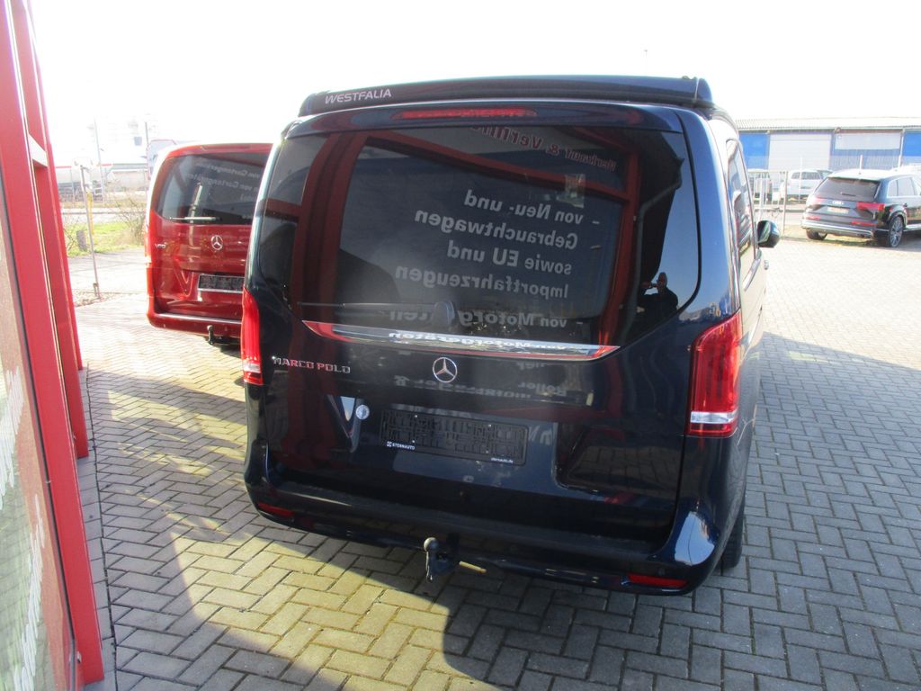 3. Bremsleuchte, Ablagenetz an Vordersitzlehne links, Ablagenetz an Vordersitzlehne rechts, Adaptives Bremslicht, Airbag Beifahrerseite, Airbag Fahrerseite, Ambiente-Beleuchtung Fahrgastraum, Anzeige für Waschwasserstand, Auflastung auf 3,1 t, Aufstelldach in Wagenfarbe lackiert, Ausführung: Marco Polo, Außenspiegel asphärisch, beide, Außenspiegel elektr. verstell- und heizbar, beide, Außenspiegel mit integrierter Blinkleuchte, Außentemperaturanzeige, Batterie zusätzlich (verstärkt), BlueEfficiency-Paket, Bodenbelag: Teppich im Fahrerraum, DAB-Tuner (Radioempfang digital), Dachbett, Design- und Ausstattungslinie Edition, Edition, Einschaltautomatik für Fahrlicht, Einstiegsgriff hinten, Einstiegsleisten mit Schriftzug Mercedes-Benz (beleuchtet), Einstiegsleuchten, Fahrassistenz-System: Anfahr-Assistent (Berganfahr-Assistent), Fahrassistenz-System: Attention-Assist (Müdigkeitserkennungs-Sensor), Fahrassistenz-System: Pannenmanagement, Fahrassistenz-System: Seitenwind-Assistent, Fenster für hintere Türen / Heckklappe mit Wisch-/Waschanlage, Fenster im Lade-/FG-Raum: - ausstellbar hinten rechts, links feststehend, Fenster im Lade-/FG-Raum: - feststehend, vorn rechts, Fenster im Lade-/FG-Raum: - schiebbar, vorn links, Feststellbremse elektrisch, Feststeller Schiebetür (Aktiv), Fußraumbeleuchtung vorn, Generator 250 A, Getriebe Automatik GTronic - (9-Stufen), Gurtstraffer, Handschuhfach abschließbar, Harnstofftank (AdBlue): 24 Ltr., Heckklappe, Heckscheibe aufstellbar, Heckscheibe heizbar, Intelligent Light System LED, Karosserie/Aufbau: lang, Karosserie/Aufbau: Motor Caravan, Karosserievariante: Aufstelldach, Kindersicherung, Komfortbeleuchtung im Fahrgast-/Laderaum, Kommunikationsmodul (LTE) für digitale Dienste, Kommunikationsmodul Mercedes me connect (Internetbasierende Dienste), Kopf-Airbag-System (Windowbag), Kopf-Schulter-Airbag (Thoraxbag) Fahrer-/Beifahrerseite, Kraftstofftank mit Falschbetankungsschutz, Kraftstofftank: vergrößert, Lenkrad (Lenksäule mech. verstellbar), Lenkrad mit Multifunktion inkl. Reiserechner, Leuchtweitenregelung, Mercedes-Benz Notrufsystem, Metallic-Lackierung, Mittelkonsole vorn mit Rollo / Ablage, Modellpflege, Motor 2,0 Ltr. - 120 kW CDI KAT, Navigationssystem für Multimediasystem MBUX, Nebelschlussleuchte, Parametrierbares Sondermodul, PKW-Zulassung, Radstand 3200 mm, Reifendruck-Kontrollsystem, Schadstoffarm nach Abgasnorm Euro 6d, Scheibenwischer mit Regensensor, Schiebetür Lade-/Fahrgastraum rechts, Schnittstellenmodul (Mercedes-Benz Advanced Control, MBAC), SCR-System (AdBlue-Technologie), Servolenkung elektro-mechanisch, Sicherheitsgurt-System mit Warnanlage (Beifahrerseite), Sicherheitsgurt-System mit Warnanlage (Fahrer-/Beifahrerseite), Sitzausstattung: Schnellverriegelung für Sitzschienen-System, Sitzbezug / Polsterung: Stoff, Sitze im Fahrerhaus: Beifahrersitz Komfort, drehbar, 1 Armlehne, Sitze im Fahrerhaus: Fahrersitz heizbar, Sitze im Fahrerhaus: Fahrersitz Komfort, drehbar, 1 Armlehne, Sitze im Fahrerhaus: Fahrersitz mit Lendenwirbelstütze, Sonnenblenden mit Spiegel (beleuchtet), Spiegel-Paket, Sport-Paket Exterieur, Spur-Paket, Steckdose (12V-Anschluß) im Lade-/Fahrgastraum, Steckdosen (12V-Anschluß) im Lade-/Fahrgastraum, 2-fach, Stoßfänger / Stoßf.-Leiste seitlich + Griff an Heckklappe lackiert, Trennrelais bei Batterie zusätzlich, Umfeldleuchte in Heckklappe, Verglasung hinten abgedunkelt / Schwarzglas, Vlies-Batterie 92 Ah, Vorbereitung Navigationssystem (für Multimediasystem MBUX), Vorhänge rundum, Warmluftkanal zum Lade-/Fahrgastraum, Wartungsintervall-Anzeige Assyst, Wärmeschutzverglasung, Zuheizer, Zusatzheizung (Luft) mit Zeitschaltuhr