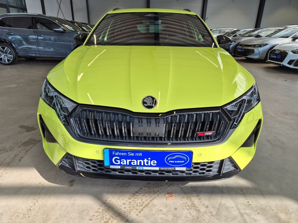 2 USB-Anschlüsse vorn und 2 USB-Ladeanschlüsse im Fond und USB-Ladeanschluß am Rückspiegel, 3-Punkt-Sicherheitsgurte hinten, Ablagefächer (Gepäck-/Laderaum), Ablagetasche an Vordersitzlehnen, Airbag Beifahrerseite abschaltbar, Airbag Fahrer-/Beifahrerseite, Akustikglas Türscheiben vorn, Antriebs-Schlupfregelung (ASR), Außenspiegel elektr. anklappbar, Außenspiegel elektr. verstell- und heizbar, Außenspiegel mit Abblendautomatik, links, Außenspiegel schwarz lackiert und Türgriffe außen in Wagenfarbe, Brillenfach, Dachhimmel schwarz, Dachreling schwarz, hochglänzend, Doppeltonfanfare, Edelstahlpedale Sportdesign, Einparkhilfe vorn und hinten, Einstiegsleisten (Aluminium-Design), Elektron. Querdifferentialsperre (XDS), Elektron. Sperrdifferential (Vorderachse) ( VAQ), Fahrassistenz-Paket: Travel Assist, Fahrassistenz-System: Abbiegebremsfunktion und Ausweichunterstützung, Fahrassistenz-System: Auffahrwarnsystem mit City-Notbremsfunktion (Frontradar-Assistent), Fahrassistenz-System: Autom. Distanzregelung (ACC) mit Frontradar-Assistent (bis 210 km/h), Fahrassistenz-System: Berganfahr-Assistent (Hill-Holder), Fahrassistenz-System: Fahrprofilauswahl, Fahrassistenz-System: Intelligente Geschwindigkeitsanpassung (ISA) inkl. Speed-Limiter, Fahrassistenz-System: Kreuzungs-Assistent (Crossroad Assist), Fahrassistenz-System: Multikollisionsbremse (Multi Collision Brake), Fahrassistenz-System: Müdigkeitserkennung, Fahrassistenz-System: Spurwechselassistent inkl. Auspark-Assistent und Ausstiegswarnung, Fahrassistenz-System: Verkehrszeichenerkennung, Fensterheber elektrisch vorn + hinten, Fensterzierleisten schwarz, hochglänzend, Freisprechanlage Telefon mit Bluetooth, Frontkamera, Fußraumbeleuchtung vorn und hinten, Gepäckraumabdeckung / Rollo, Heckleuchten LED (Kristallglas-Optik), Heckscheibenwischer, Heckspoiler, Induktionsladeschale für Smartphone, Infotainment-System mit 13" Display, Innenausstattung: Dekoreinlagen Dark Carbon, Innenausstattung: Luftausströmer Schwarz, Innenspiegel mit Abblendautomatik, Isofix-Aufnahmen für Kindersitz an Beifahrersitz und Rücksitze außen (inkl. Top Tether), Karosserie: 5-türig, Kindersicherung, manuell, Knieairbag Fahrerseite, Kofferraumbeleuchtung, Kombiinstrument digital (virtual cockpit plus), Komfortöffnung für elektr. Heckklappe/-Deckel, Kopf-Airbag-System, Kühlergrill schwarz, Laderaumboden variabel, Lehnenentriegelung der Rücksitzlehne im Kofferraum, Lenksäule (Lenkrad) verstellbar (vertikal / axial), Leseleuchten vorn und hinten, LM-Felgen, Matrix-LED-Scheinwerfer, Modellpflege, Motor 2,0 Ltr. - 195 kW TSI, Motor-Schleppmoment-Regulator (MSR), Navigationssystem, Netzprogramm im Kofferraum, Parkbremse elektronisch, Progressivlenkung, Radioempfang digital (DAB+), Reifendruck-Kontrollsystem, Rücksitz geteilt / klappbar (60:40) Mittelarmlehne und Durchladefunktion, Rücksitzlehne geteilt/klappbar, Schadstoffarm nach Abgasnorm Euro 6e, Seitenairbag vorn mitte (Center-Airbag), Servolenkung elektronisch (Servotronic), Simply Clever-Paket, Sitzbezug / Polsterung: Stoff RS schwarz mit Ziernaht, Sitzheizung vorn, SKODA Care Connect & Infotainment Online, Sonnenblenden mit Spiegel (LED-Beleuchtung), Sonnenschutz & Schlaf-Paket, Sport-Auspuffanlage, Sport-Fahrwerk, Sportsitze, Sprachsteuerung für Infotainment-System, Steckdose (12V-Anschluß) im Koffer-/Laderaum, Stoßfängerblende und Heckdiffusor schwarz glänzend, Türen mit Warnleuchte, Türgriffe innen verchromt, Verzurrösen Koffer-/Laderaum, Vorbereitung für Alkohol-Wegfahrsperre (Alcolock), Warnanlage für Sicherheitsgurte hinten, Warnanlage für Sicherheitsgurte, Fahrer-/Beifahrerseite, Wireless SmartLink, Zentralverriegelung / Startanlage Kessy-Go