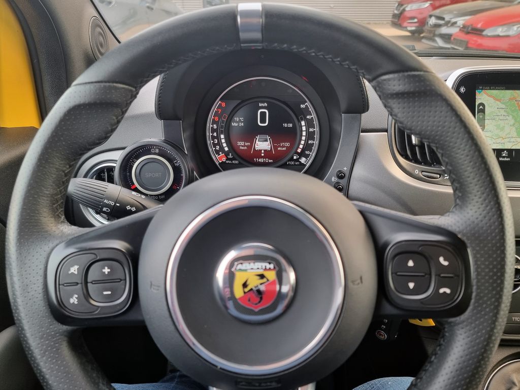 Einparkhilfe hinten, Infotainment-System: UConnect mit MP3-Player, Navigationssystem und DAB Radioempfang(Touchscreen 7"), Kit ESTETICO Abarth (Design Set), Mobile Online Dienste MirrorLink, Smartphone Schnittstelle (Apple CarPlay & Android Auto), Uni-Lackierung (Sonderfarbe),