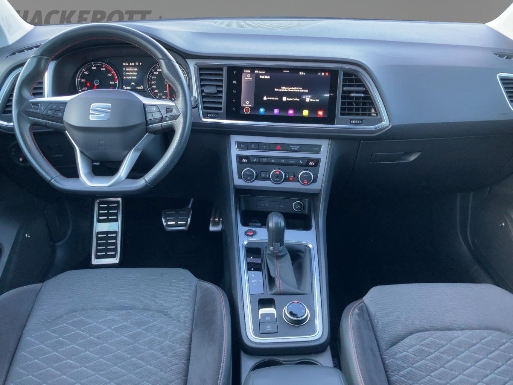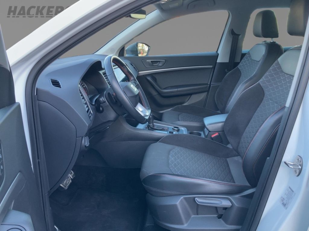 - Weiteres: Antriebs-Schlupfregelung (ASR), BORDCOMPUTER, Geschwindigkeits-Regelanlage (Tempomat), Reifen-Reparaturset, Dachreling, ISOFIX-Aufnahmen für Kindersitz, Rücksitzlehne geteilt/klappbar (1/3-2/3), Lendenwirbelstütze Sitz vorn links, verstellbar, Lendenwirbelstütze Sitz vorn rechts, verstellbar, Elektron. Querdifferentialsperre (XDS), Notrufsystem, Leuchtweitenregelung automatisch, Sitzbezug / Polsterung: Stoff, Rückfahrkamera, Nebelscheinwerfer LED mit Abbiegelicht, Getriebe 7-Gang - Doppelkupplungsgetriebe DSG, Schließ-/Startsystem Kessy, LM-Felgen, USB-Schnittstelle vorn (2-fach, Typ C), Mobile Online Dienste Seat Connect, Schadstoffarm nach Abgasnorm Euro 6d, Seitenscheiben hinten und Heckscheibe abgedunkelt, Knieairbag Fahrerseite, Außenspiegel elektr. verstell-, heiz- und anklappbar mit Spiegelabsenkung, Mittelkonsole vorn mit Mittelarmlehne, Becherhalter, Ablagebox und Luftdüsen hinten, Bluetooth-Schnittstelle mit Freisprecheinrichtung integriert, Scheinwerfer Voll-LED, Scheibenwischer mit Regensensor, Reserverad als Notrad, Anhängerkupplung (Kugelkopf mit elektr. Entriegelung, schwenkbar), Audiosystem: BeatsAudio Soundsystem, Audio-Navigationssystem mit Touchscreen Farbbildschirm, Lenkrad heizbar (Leder) mit Multifunktion und Schaltfunktion, Airbag Fahrer-/Beifahrerseite, Anti-Blockier-System (ABS), Tagfahrlicht LED, Kopf-Airbag-System, Reifenkontroll-Anzeige, Seitenairbag, Wegfahrsperre (elektronisch), Ambiente-Beleuchtung LED, Gepäckraumabdeckung / Rollo, USB-Ladeanschlüsse (2-fach, Typ C) für 2.Sitzreihe, Heckleuchten LED mit dynamischem Blinklicht, Licht- und Regensensor, Full Link (MirrorLink, Apple CarPlay und Android Auto), Metallic-Lackierung, Antriebsart: Frontantrieb, Audiosystem mit Touchscreen-Farbdisplay, Außenspiegel grau, Beifahrerairbag abschaltbar, Berg-Anfahr-Assistent (Hill-Holder), Blinkleuchten LED in Außenspiegel integriert, Bluetooth Audio-Streaming, Brillenfach, Business-Paket Infotain, Climatronic 2-Zonen, Elektron. Stabilitätskontrolle (ESC), Fahrprofilauswahl (SEAT Drive Profile), Fensterheber elektrisch vorn und hinten mit Komfortschaltung, Handschuhfach beleuchtet, Induktionsladeschale für Smartphone, Innenraumlicht-Paket LED, Innenspiegel mit Abblendautomatik, Licht- und Sicht-Paket, Lichtassistent (Coming Home, Leaving Home), Mittelarmlehne hinten, Motor 1,5 Ltr. - 110 kW 16V TSI ACT, Müdigkeitserkennung, Parklenkassistent mit Einparkhilfe vorn und hinten, Pedale Aluminium-Design, Progressivlenkung, Radioempfang digital (DAB+), SEAT Media-System Plus, Sitzheizung vorn, Sitzhöhenverstellung Fahrersitz, Sprachsteuerung, Start/Stop-Anlage, Stoßfänger FR-Design, Umfeldbeobachtungssystem (Front Assist) mit City-Notbremsfunktion, Wärmeschutzverglasung, Winter-Paket, ZV mit Fernbedienung
