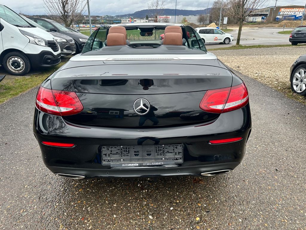 Sonderausstattung:Ablage-Paket, Ambiente-Beleuchtung, AMG-Line Interieur, Audiosystem Audio 20 (mit Farbdisplay), Cabrio-Komfort-Paket, Fahrassistenz-System: aktiver Park-Assistent, Fahrassistenz-System: Fernlichtassistent Adaptive plus, Infotainment-System: Remote Online, Intelligent Light System LED, Klimaautomatik (Thermatic 2-Zonen), Kraftstofftank: vergrößert, Metallic-Lackierung, Reifen-Reparaturset (Tirefit), Scheibenwaschanlage beheizt, Sitz-Komfort-Paket, Sitzbezug / Polsterung: Ledernachbildung Artico, Sitzheizung vorn, Spiegel-Paket, Touchpad mit Drehknopf (Mittelkonsole), Vorbereitung Navigationssystem (Garmin MAP Pilot)