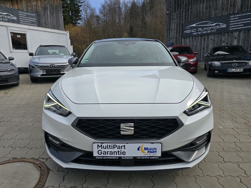6 Lautsprecher, Ablagetasche an Vordersitzlehnen, Airbag Beifahrerseite abschaltbar, Airbag Fahrer-/Beifahrerseite, Antriebs-Schlupfregelung (ASR), Außenspiegel elektr. verstell-, heiz- und anklappbar mit Spiegelabsenkung, Außenspiegel grau, Blinkleuchten LED in Außenspiegel integriert, Bluetooth-Schnittstelle mit Freisprecheinrichtung integriert, Bordcomputer, Doppeltonhorn, Einparkhilfe hinten, Einstiegsleisten beleuchtet, Elektron. Querdifferentialsperre (XDS), Fahrassistenz-System: Fahrprofilauswahl (SEAT Drive Profile), Fahrassistenz-System: Müdigkeitserkennung, Fahrassistenz-System: Spurhalteassistent, Fahrassistenz-System: Umfeldbeobachtungssystem (Front assist) mit City-Notbremsfunktion, Fensterheber elektrisch vorn + hinten mit Komfortschaltung, Gepäckraumabdeckung / Rollo, Handschuhfach beleuchtet, Heckleuchten Voll-LED mit dynamischem Lichtband (Infinite Light), Innenraumlicht-Paket LED, Isofix-Aufnahmen für Kindersitz, Karosserie: 5-türig, Klimaanlage Climatronic 3-Zonen, Kofferraumbeleuchtung, Kombiinstrument digital (virtual cockpit), Kopf-Airbag-System, Lendenwirbelstütze Sitz vorn links, verstellbar, Lendenwirbelstütze Sitz vorn rechts, verstellbar, Lenkrad (Sport/Leder) mit Multifunktion, Mild-Hybrid 110 kW (Motor 1,5 Ltr. - 110 kW eTSI ACT), Mobile Online Dienste Seat Connect, Nebelscheinwerfer LED mit Abbiegelicht, Notrufsystem, Otto-Partikelfilter (OPF), Parkbremse elektrisch mit Auto-Hold-Funktion, Radioempfang digital (DAB+), Reifenkontroll-Anzeige, Rücksitzlehne geteilt/klappbar (1/3-2/3), Schadstoffarm nach Abgasnorm Euro 6d, Schalt-/Wählhebelgriff Leder, Seitenairbag, Seitenairbag vorn mitte (Central Airbag), Seitenscheiben hinten und Heckscheibe abgedunkelt, Sitz vorn links höhenverstellbar, Sitz vorn rechts höhenverstellbar, Sport-Fahrwerk, Sport-Komfortsitze vorn, Start/Stop-Anlage, Steckdose (12V-Anschluß) vorn, Stoßfänger FR-Design, USB-Schnittstelle vorn (2-fach, Typ C), Verzurrösen Koffer-/Laderaum, Warnanlage für Sicherheitsgurt-System, Wärmeschutzverglasung, Zentralverriegelung / Startanlage Keyless Go (Start-Stop-Knopf), Nebelscheinwerfer, Seitenscheiben hinten und Heckscheibe abgedunkelt
