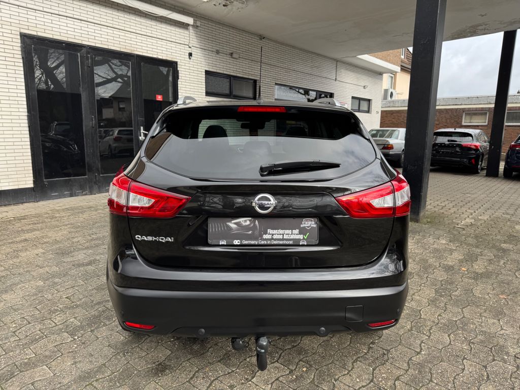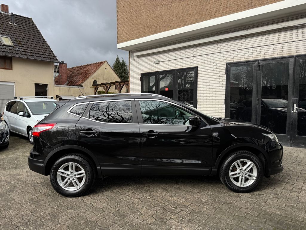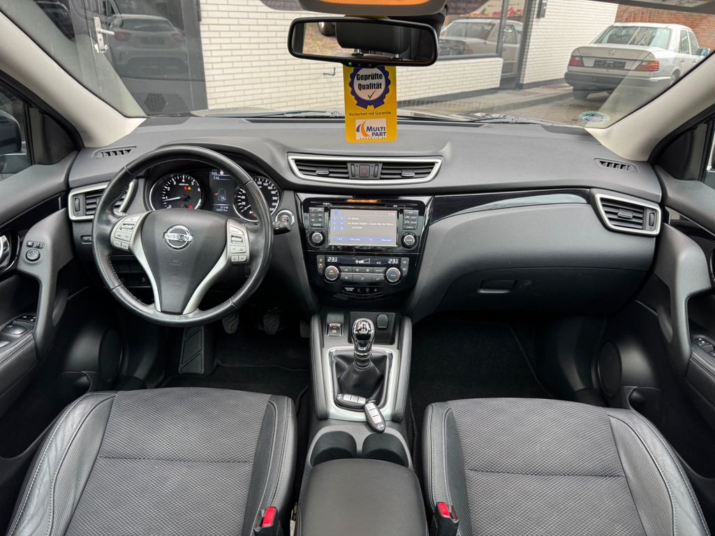 3. Bremsleuchte, Airbag Beifahrerseite abschaltbar, Airbag Fahrer-/Beifahrerseite und Seitenairbag vorn, Ambiente-Beleuchtung, Audio Navigationssystem Nissan Connect mit Touchscreen-Farbdisplay, Audiobedienung am Lenkrad, Audiosystem: Radio mit CD- und MP3-Player, Automatische Fahrlichtschaltung, AUX-IN-Anschluss (AUX-IN), Außenspiegel elektr. anklappbar, Außenspiegel elektr. verstell- und heizbar, Außenspiegel Wagenfarbe, Außentemperaturanzeige, Blinkleuchte in Außenspiegel integriert, Bordcomputer, Bremsassistent (Nissan Brake-Assist), Coming-Home-Lichtfunktion (Friendly Lightning), Dachreling silber, Elektr. Bremskraftverteilung (EBD), Fahrassistenz-Paket Visia, Fahrassistenz-System: Aktive Fahrkomfortregelung (Fahrwerksdämpfung), Fahrassistenz-System: Aktive Motorbremse, Fahrassistenz-System: Berganfahr-Assistent, Fahrassistenz-System: Fernlichtassistent, Fahrassistenz-System: Kurvenbremskontrolle (Aktive Spurkontrolle), Fahrer-Informations-System (FIS) mit Farbdisplay, Fensterheber elektrisch vorn + hinten, Fernentriegelung Tankklappe, Freisprechanlage Bluetooth, Frontscheibe Verbundglas, Gepäckraumabdeckung / Rollo, Getränkehalter in Mittelkonsole, Gurtstraffer, Handschuhfach beleuchtet, Heckscheibe heizbar, Innenraumfilter: Pollenfilter, Isofix-Aufnahmen für Kindersitz, Kamerasystem Around View, Karosserie: 5-türig, Klimaautomatik 2-Zonen, Kopf-Airbag-System, Kopfstützen vorn und hinten verstellbar, Lendenwirbelstütze Sitz vorn links, Lenksäule (Lenkrad) höhen-/längsverstellbar, Leseleuchte vorn, LM-Felgen, Mittelarmlehne hinten, Motor 1,6 Ltr. - 120 kW KAT, Nebelschlussleuchte, Parkbremse elektrisch, Radstand 2646 mm, Reifen-Reparaturset, Reifendruck-Kontrollsystem, Rücksitz geteilt/klappbar, Schadstoffarm nach Abgasnorm Euro 6, Schalt-/Wählhebelgriff Leder, Schaltpunktanzeige, Scheibenwischer mit Intervallschaltung, Sitz vorn links höhenverstellbar, Sitz vorn rechts höhenverstellbar, Sitzheizung vorn, Sonnenblenden mit Spiegel (beleuchtet), Start-Stop-Knopf, Start/Stop-Anlage, Steckdose (12V-Anschluß) in Mittelkonsole, Türgriffe innen verchromt, Verglasung hinten abgedunkelt, Wärmeschutzverglasung mit UV-Schutz