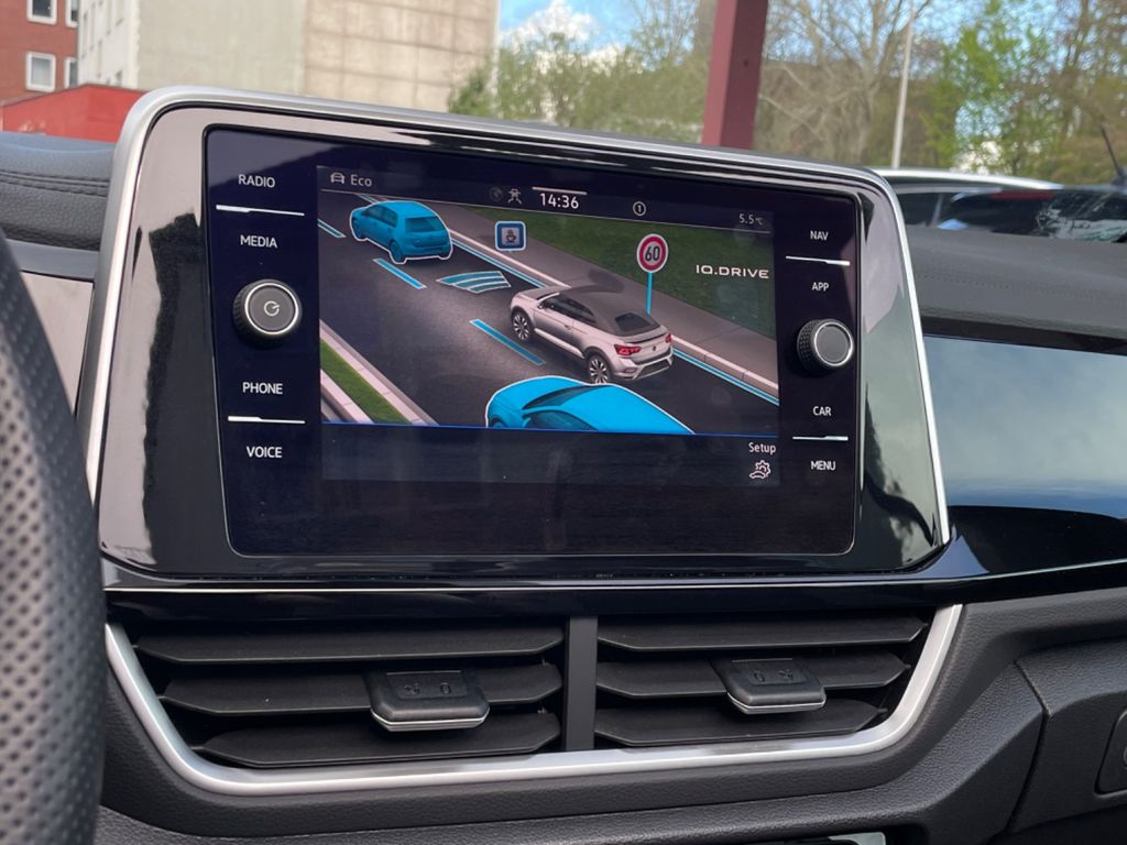 Erleben Sie Cabrio-Fahrspaß mit diesem gepflegten VW T-Roc Cabrio aus 2022. Das Fahrzeug überzeugt mit seinem 150 PS starken 1.5-Liter-Benzinmotor (Euro 6d) und Automatikgetriebe. Der schwarze Metallic-Lack in Kombination mit der Teillederausstattung verleiht dem Wagen eine elegante Optik. Mit nur einem Vorbesitzer und lückenloser Servicehistorie bietet dieses Fahrzeug Zuverlässigkeit und Sicherheit.Die umfangreiche Ausstattung umfasst ein digitales Cockpit, Navigationssystem, Apple CarPlay und Android Auto. Für zusätzlichen Komfort sorgen die 2-Zonen-Klimaautomatik, elektrisch verstellbare Sitze mit Sitzheizung und das Keyless-Entry-System. Das Fahrzeug verfügt über zahlreiche Fahrassistenzsysteme wie adaptiven Tempomat, Spurhalteassistent, Totwinkelwarner und Verkehrszeichenerkennung.