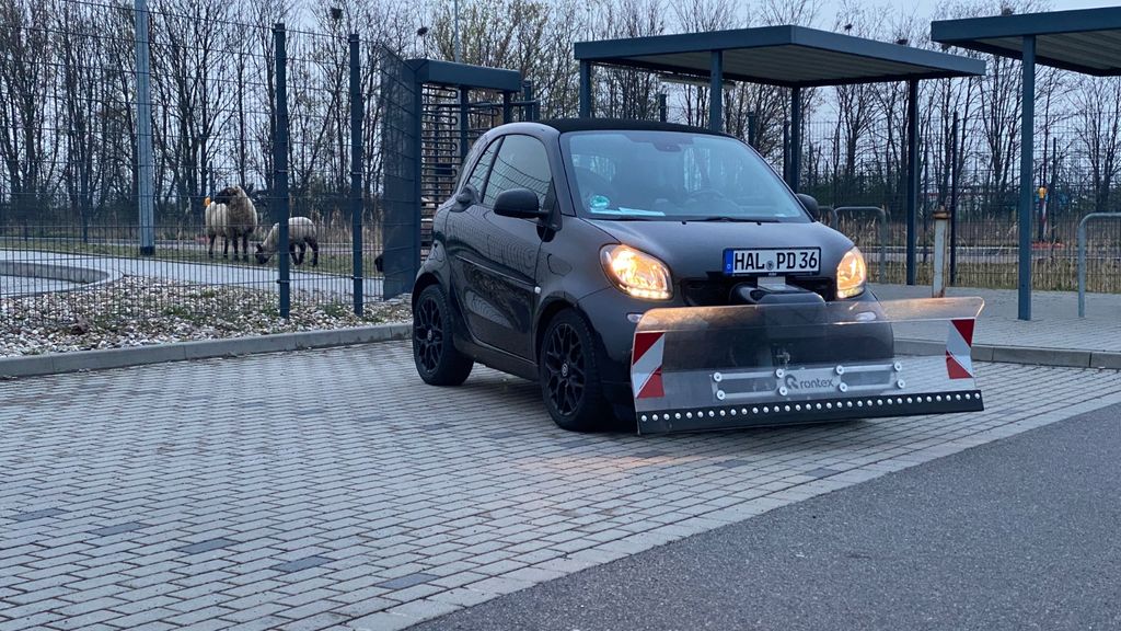 Der Schneepflug kann im Sommer abgebaut werden und der Salzstreuer ist in 1 Minute Montiert.
