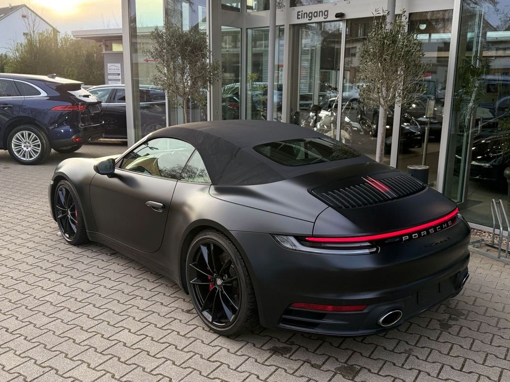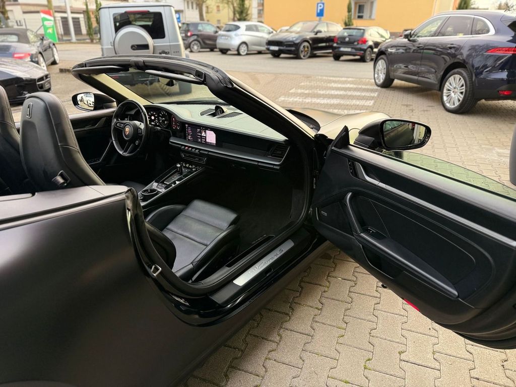 Antriebsart: Heckantrieb, Außenspiegel asphärisch, links, Blinkleuchten LED, Bremssättel Rot lackiert, Cabrio, Connect Plus (Bluetooth, Apple CarPlay, WLAN, Vehicle-Tracking-System), Dachhimmel Stoff, Drehzahlmesser, Einstiegsblenden mit Modellbezeichnung (Aluminium), Fahrassistenz-System: Kollisionswarnsystem mit Bremseingriff und Fußgängererkennung, Fahrassistenz-System: Park-Assistent vorn und hinten inkl. Rückfahrkamera, Fußmatten, Getriebe 8-Gang - Doppelkupplungsgetriebe (PDK), Getränkehalter, Hauptscheinwerfer LED, Heckleuchten LED, Heckscheibe heizbar, Heckspoiler, Innenraumfilter: Aktivkohlefilter (Geruchsfilter), Karosserie: 2-türig, Kleiderhaken Sitzrückenlehne Leder, Klimaautomatik 2-Zonen, Motor 3,0 Ltr. - 331 kW KAT, Otto-Partikelfilter (OPF), Parkbremse elektrisch, Porsche Active Suspension Management (PASM), Porsche Torque Vectoring Plus (PTV Plus), Schadstoffarm nach Abgasnorm Euro 6d-TEMP, Schriftzug Modellreihe, Schwellerabdeckung / -verkleidung lackiert, Sport Taste, Turbo, Uni-Lackierung, Verdeckbetätigung elektrisch, Verglasung getönt, Windschott elektrisch