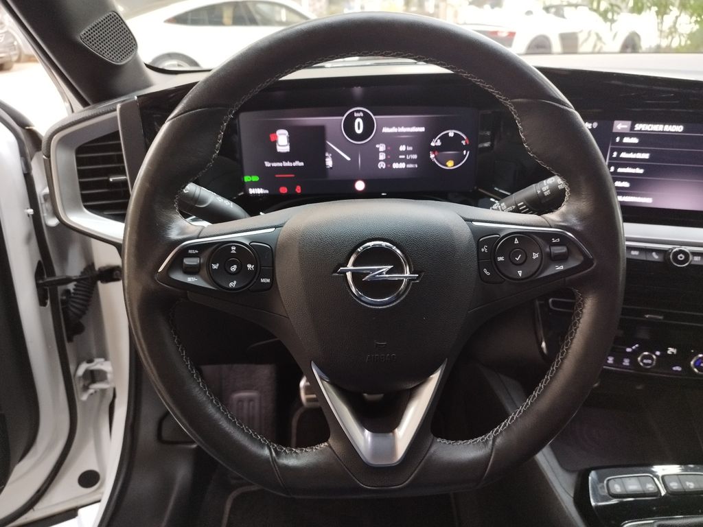 Audio-Navigationssystem Multimedia Navi Pro (10" Display), Bluetooth Audio-Streaming, DAB-Tuner (Radioempfang digital), Dach Diamant-Schwarz, Dachhimmel schwarz, Dachspoiler, Elektron. Stabilitäts-Programm Plus (ESP), Fahrassistenz-Paket: Active Drive Assist, Fahrassistenz-Paket: Active Drive Assist plus, Fahrassistenz-System: Müdigkeitserkennungs-Sensor, Fahrassistenz-System: Verkehrszeichenerkennung, Fahrzeugschlüssel (2) beide klappbar, Feststellbremse elektrisch, Freisprecheinrichtung (Bluetooth) mit Sprachsteuerung, Innenausstattung: Leder Alcantara, Karosserie: 5-türig, Klimaautomatik, Kopf-Airbag-System, Kühlergrill, Opel Vizor, Rahmen in Chrom, Lenkrad heizbar, LM-Felgen, Motor 1,2 Ltr. - 96 kW, MP3-Schnittstelle für Mobiltelefon/Handy, Nebelscheinwerfer LED, Otto-Partikelfilter (OPF), Radstand 2557 mm, Reifen-Reparaturkit, Schadstoffarm nach Abgasnorm Euro 6d, Seitenairbag vorn, Sicht-Paket, Sitzheizung vorn, Start/Stop-Anlage, Technologie-Paket Park & Go, Voll-LED (IntelliLux), Wärmeschutzverglasung, Wärmeschutzverglasung hinten abgedunkelt (Solar-Protect), Sitze: Top-Sportsitze vorn, Sitzheizung vorn