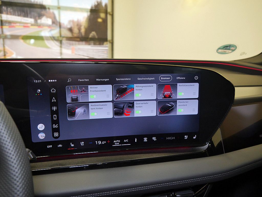 Abstandsregeltempomat, adaptive Fahrassistent plus, Assistenzpaket Schutz- und Warnsysteme plus, Side Assist / Spurwechselassistent, Spurassistent, Spurwechselassistent, 360-Grad-Kamera, Fernlichtassistent, Verkehrszeichenerkennung, Einparkhilfe plus, Frontkamera, Parklenkassistent, Querverkehrswarnung, Rückfahrkamera, AutoHold Funktion/Halteassistent, Berganfahrassistent, Lenk- und Spurführungsassistent, Lichtsensor, Abbiegeassistent/Warnung, Ausweichassistent, Front Assist, Fußgängererkennung, Ausstiegswarnung/-Assistent, Notfallassistent, Umgebungskamera, Audi connect Notruf, Kreuzungswarnung/Assistent, Multifunktionskamera.