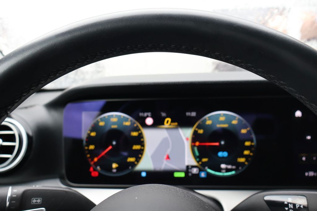 Diese gepflegte Mercedes-Benz E 300 Limousine aus dem Jahr 2020 präsentiert sich in elegantem Schwarz mit schwarzem Stoffinterieur. Der Hybrid-Diesel-Motor mit 194 PS und Automatikgetriebe bietet eine perfekte Balance aus Leistung und Effizienz nach Euro 6d-Standard. Mit nur einem Vorbesitzer und lückenloser Servicehistorie ist dieser Hecktriebler in hervorragendem Zustand. Die Ausstattung umfasst ein digitales Cockpit mit Navigationssystem, Apple CarPlay und Android Auto sowie ein umfassendes Sicherheitspaket mit Kollisionsvermeidung, Müdigkeitserkennung und Verkehrszeichenerkennung. Der Fahrkomfort wird durch die 2-Zonen-Klimaautomatik, elektrisch verstellbare Sitze mit Lendenwirbelstütze und Sitzheizung abgerundet.- LED-Scheinwerfer und Tagfahrlicht