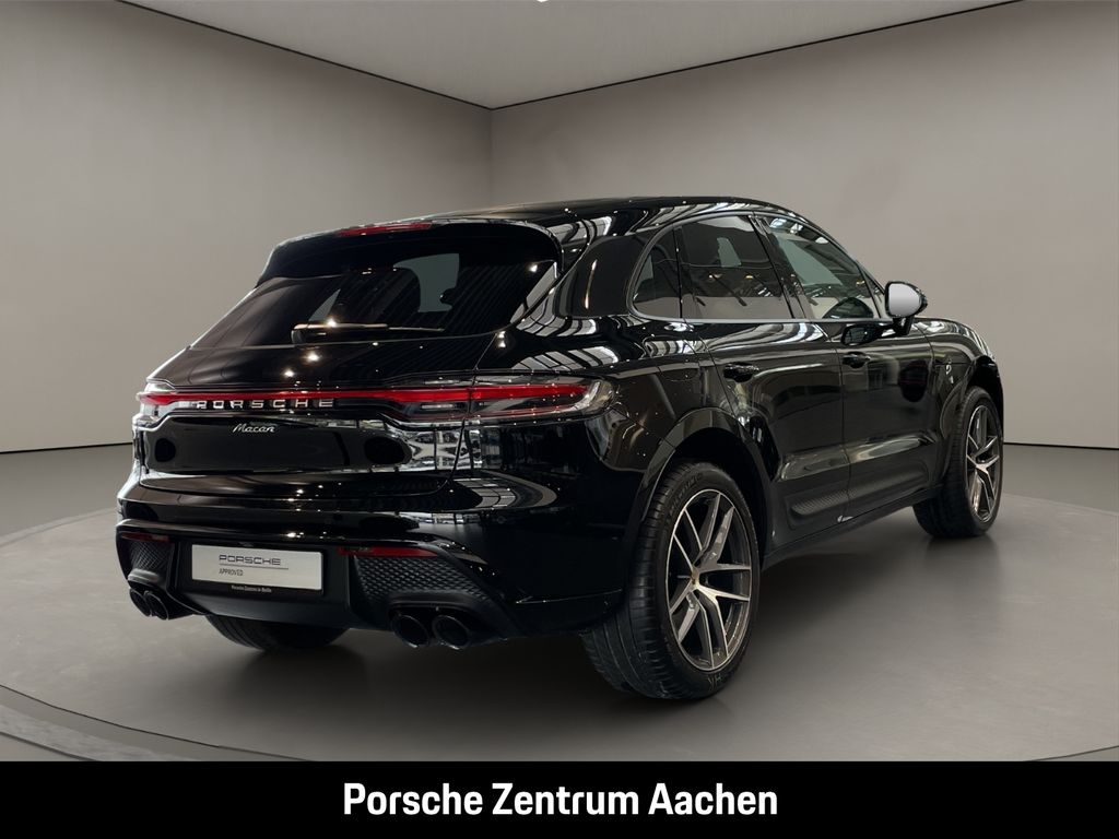 - Weiteres: (3FU) Panorama Dachsystem, (2D7) Heckunterteil lackiert in Exterieurfarbe, (1BH) Stahlfederfahrwerk inkl. Porsche Active Suspension Management (PASM), (0P6) Sportendrohre schwarz, (1N3) Servolenkung Plus, (0M2) Kraftstofftank 75 l, (1NP) Radnabenabdeckungen mit farbigem Porsche Wappen, (55T) 20-Zoll Macan S Räder lackiert in Titandunkel glanzgedreht, (Q2J) Komfortsitze vorn (14-Wege, elektrisch) mit Komfort-Memory-Paket, (4A3) Sitzheizung vorn, (2ZH) Lenkradheizung, (5TL) Interieur-Paket schwarz (hochglanz), (9VL) BOSE® Surround Sound-System, (8IU) LED-Hauptscheinwerfer inkl. Porsche Dynamic Light System Plus (PDLS Plus), (VW1) Privacy-Verglasung, (QR9) Tempolimitanzeige, (7Y1) Spurwechselassistent