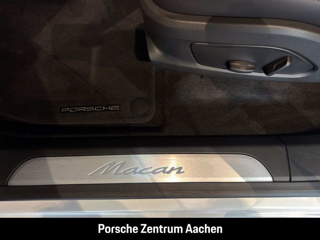 - Weiteres: Ex WW, (3FU) Panorama Dachsystem, (1N3) Servolenkung Plus, (1BK) Adaptive Luftfederung mit Niveauregulierung und Höhenverstellung inkl. Porsche Active Suspension Management (PASM), (1G8) Reifendichtmittel mit elektrischem Kompressor, (54R) 21-Zoll Macan Design Räder, (AI9) Lenkradheizung, (3A3) ISOFIX/I-Size-Befestigungssystem für Kindersitz auf Beifahrersitz, (4L6) Automatisch abblendende Innen- und Außenspiegel, (VW1) Privacy-Verglasung, (PX6) Surround View inkl. Aktive Einparkunterstützung