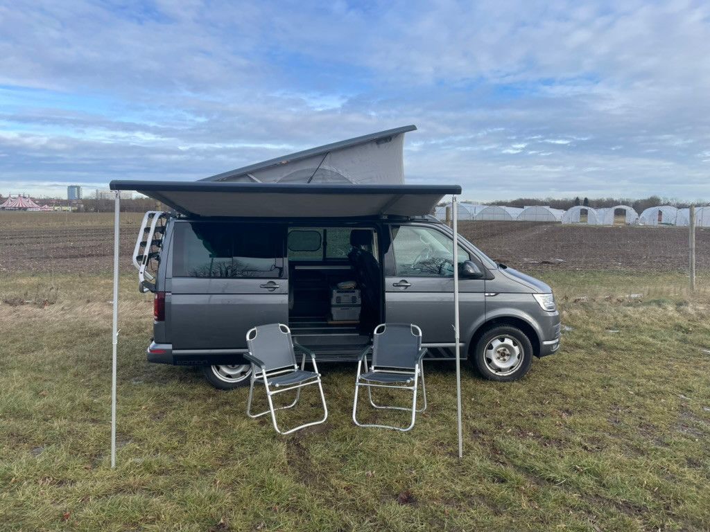 • Campingtisch in der Schiebetüre, 2 Campingstühle in der Heckklappe