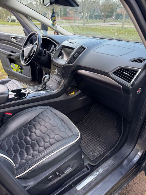 Adaptive LED-Scheinwerfer (Ford Dynamic LED), Ambientebeleuchtung vorn, Antiblockier-Bremssystem (ABS) mit elektronischer Bremskraftverteilung (EBD), Außenspiegel in Wagenfarbe, Fahrer- und Beifahrerseite, elektrisch einstellbar und beheizbar, Bereifung: 7,5 J x 18 Leichtmetallfelgen (4) mit 235/50 R 18 Reifen, Berganfahrassistent, Bremsleuchte, dritte, Dieselpartikelfilter (DPF), Doppelrohr-Auspuffanlage, Drehzahlmesser, Einstiegszierleisten vorn in Chrom-Dekor, Einstiegszierleisten vorn, mit Vignale-Design, Elektronisches Sicherheits- und Stabilitätsprogramm (ESP) inkl. Antriebsschlupf-Regelung (ASR), Fahrerinformationssystem Display 25,4 cm farbig, Fahrspur-Assistent inkl. Fahrspurhalte-Assistent und Müdigkeitswarner, Fensterheber vorn und hinten, elektrisch, Feststellbremse, elektronisch, Ford Power Startfunktion, Ford Power Startfunktion mit Ford Key Free-System, Gepäckraumabdeckung, Gepäckraumbeleuchtung, Geschwindigkeitsregelanlage mit intelligentem Geschwindigkeitsbegrenzer, Getriebe: 6-Gang-Automatikgetriebe, Handschuhfach beleuchtet, Heckscheibenheizung, Heckscheibenwischer, Innenbeleuchtung mit Verzögerungsschaltung, Intelligentes Sicherheits-System, Isofix-Halterung, Kindersicherung elektrisch, Klimaanlage mit automatischer Temperaturkontrolle, Kühlergrill mit Chrom-Dekor, Lackierung: Metallic, Lenkrad: Lenksäule, in Höhe und Reichweite einstellbar, Lenkrad: Multifunktions-Lederlenkrad und Lederschaltknauf, Lenkrad: Schaltwippen am Lenkrad, Leselampen vorn und hinten, Mittelkonsole vorn, mit gepolsterten Armauflagen, MyKey-Schlüsselsystem (individuell programmierbarer Zweitschlüssel), Navigationssystem Sony inkl. Ford SYNC 3 mit AppLink und Touchscreen, Nebelscheinwerfer, Notbremslicht, Paket: Winter, Park-Pilot-System vorn und hinten, Reifen-Reparatur-Set, Reifendruckkontrollsystem (TMPS - Tyre Pressure Monitoring System), Rückfahrkamera, Scheibenwischer mit Regensensor, Scheinwerfer-Abblendlicht mit Ausschaltverzögerung inkl. "Begrüßungsfunktion", Scheinwerfer-Assistent mit Tag/Nacht-Sensor, Seitenschweller in Wagenfarbe lackiert, Servolenkung elektro-mechanisch, Sicherheits-Bremsassistent (EBA), Sitze: Fahrer- und Beifahrersitz 10-fach elektrisch einstellbar, Sitze: Flexibles Sitzsystem "FoldFlatSystem (FFS)", Sitze: Hochwertige Sportsitze mit exklusiver Lederausstattung, Sitze: Vordersitze individuell und variabel beheizbar, Start-Stopp-System, Staufach unter Fahrer- und Beifahrersitz, Steckdose: 12-Volt-Anschluss vorn, Teppichfußmatten "Premium" vorne und hinten, Warnsystem für nicht angelegte Sicherheitsgurte für die 1. und 2. Sitzreihe, Wegfahrsperre, Zentralverriegelung mit Fernbedienung.