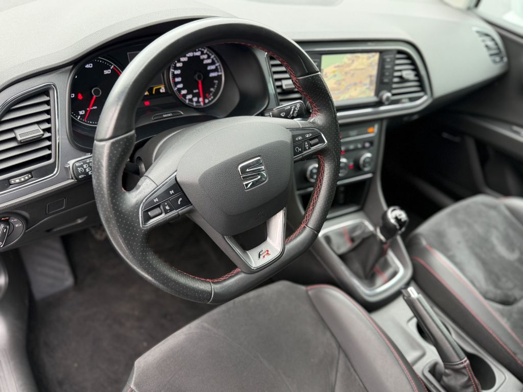 Ablagetasche an Vordersitzlehnen, Airbag Beifahrerseite abschaltbar, Airbag Fahrer-/Beifahrerseite, Antriebs-Schlupfregelung (ASR), Außenspiegel elektr. anklappbar, Außenspiegel elektr. verstell-, heiz- und anklappbar, beide, Außenspiegel mit Spiegelabsenkung, rechts, Außenspiegel und Türgriffe außen in Wagenfarbe, Außentemperaturanzeige, Blinkleuchten LED in Außenspiegel integriert, Bordcomputer, Bremsassistent, Elektron. Differentialsperre (EDS), Fahrassistenz-System: Berganfahr-Assistent (Hill-Holder), Fahrassistenz-System: Berganfahr-Assistent und Elektron. Differentialsperre, Fahrassistenz-System: Fahrprofilauswahl (SEAT Drive Profile), Fensterheber elektrisch hinten, Handschuhfach beleuchtet, Heckleuchten LED, Innenausstattung: Chrom-Applikationen, Isofix-Aufnahmen für Kindersitz, Karosserie: 5-türig, Klimaanlage Climatronic 2-Zonen, Knieairbag Fahrerseite, Kopf-Airbag-System, Kopfstützen hinten (3-fach), Kopfstützen vorn verstellbar, Lendenwirbelstütze Sitz vorn links, verstellbar, Lendenwirbelstütze Sitz vorn rechts, verstellbar, Lenkrad (Sport/Leder), Mittelkonsole vorn mit Mittelarmlehne, Becherhalter, Ablagebox und Luftdüsen hinten, Motor 2,0 Ltr. - 135 kW TDI, Reifenkontroll-Anzeige, Rücksitzlehne geteilt/klappbar (1/3-2/3), Schadstoffarm nach Abgasnorm Euro 6, Schalt-/Wählhebelgriff Leder, Seitenairbag, Seitenscheiben hinten und Heckscheibe abgedunkelt, Sitz vorn links höhenverstellbar, Sitz vorn rechts höhenverstellbar, Sonnenblende links mit Spiegel (beleuchtet), Sonnenblende rechts mit Spiegel (beleuchtet), Sport-Fahrwerk FR / Cupra, Sportsitze vorn, Sprachsteuerungs-System, Start/Stop-Anlage, Stau-/Ablagefach unter Sitze vorn, Steckdose (12V-Anschluß) vorn, Stoßfänger lackiert, Wärmeschutzverglasung