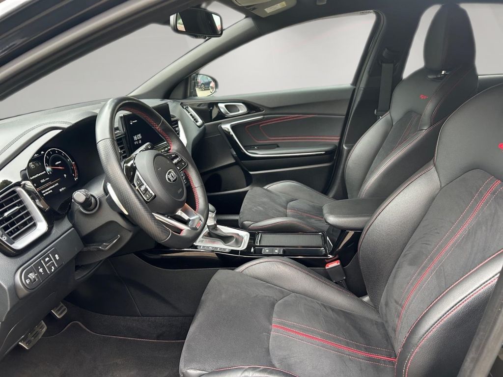 - Weiteres: BORDCOMPUTER, Geschwindigkeits-Regelanlage (Tempomat), Schalt-/Wählhebelgriff Leder, Rückfahrkamera, Mittelarmlehne hinten mit Getränkehalter, Scheibenwischer mit Regensensor, Reifen-Reparaturset, Einparkhilfe hinten, Heckleuchten LED, Dachspoiler, Einparkhilfe vorn, Multifunktion für Lenkrad, Getriebe 7-Gang - Doppelkupplungsgetriebe DCT, Fensterheber elektr. mit Einklemmschutz vorn, Start/Stop-Anlage (ISG), Fensterheber elektr. mit Einklemmschutz hinten, LM-Felgen, Schadstoffarm nach Abgasnorm Euro 6d, Touchscreen-Farbdisplay (8,0 Zoll), Sitzbezug / Polsterung: Leder mit Wildleder, Rücksitzbank geteilt/klappbar (60:40), Klimaautomatik 2-Zonen, Audio-Navigationssystem KIA (10,25), Airbag Fahrer-/Beifahrerseite, Anti-Blockier-System (ABS), Nebelscheinwerfer, Stoßfänger Wagenfarbe, Tagfahrlicht LED, Außenspiegel elektr. verstellbar, beide, Wegfahrsperre, Kopf-Airbag-System, Seitenairbag, USB-Anschluss + AUX-IN-Anschluss, Elektron. Stabilitäts-Programm (ESP / ESC), Anzeige für Reifendruck im Display, Adaptive Geschwindigkeits-Regelanlage mit Stop&Go-Funktion, USB-Schnellladeanschluß Mittelkonsole, Auspuffanlage mit Klappensteuerung, Metallic-Lackierung, 12V-Steckdose, 12V-Steckdose im Laderaum, aktiver Spurhalteassistent (LKAS, Lane Keep Assist System), Antriebs-Schlupfregelung (TCS), Außenspiegel elektr. anklappbar, Außenspiegel mit BLIS (Blind Spot Informations System), Ausstattung GT, Berg-Anfahr-Assistent, Bi-LED-Scheinwerfer, Blinkleuchte in Außenspiegel integriert, Bremsassistent, Chromeinfassung Seitenfenster, DAB-Tuner (Radioempfang digital), Dachantenne im Haifischflossen-Design, Drive-Mode Auswahl, Einschaltautomatik für Fahrlicht, Einstiegsleisten (Aluminium), Elektr. Bremskraftverteilung (EBD), Fahrersitz elektr. verstellbar/Memory, Fensterheber elektrisch vorn und hinten, Fernlichtassistent, Freisprechanlage Bluetooth, Frontkollisionswarnung mit Fußgängererkennung, Getränkehalter, Gurtwarner, Gurtwarner hinten, Heckscheibe heizbar, Heckscheibenwischer, Induktionsladeschale für Smartphone, Innenspiegel mit Abblendautomatik, Intelligentes Parksystem mit Einpark-Assistent (Parallel- und Quereinparken und Parallelausparken), Isofix-Aufnahmen für Kindersitz, Komfort-Paket, Kopfstützen hinten, Laderaumboden variabel, Lendenwirbelstützen elektr. verstellbar, Lenkrad heizbar, Mittelarmlehne vorn verschiebbar, Motor 1,6 Ltr. - 150 kW TGDI KAT, Müdigkeitserkennungs-Sensor