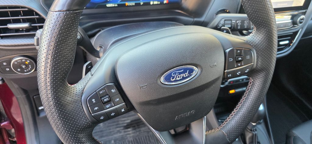 Ambiente-Beleuchtung vorn (LED), Antischlupfregelung (ASR), Audio-Navigationssystem Ford mit AppLink, Außenspiegel elektr. anklappbar, Außenspiegel elektr. verstell- und heizbar, Außenspiegel mit Blind Spot Informations System, Body-Styling-Paket Edition, Dach andersfarbig lackiert / Kontrastfarbe, Dachhimmel Stoff, dunkel, Dachspoiler (große Ausführung) schwarz lackiert, Eco-Anzeige für verbrauchsoptimiertes Fahren (EcoCoach), Einstiegsleisten beleuchtet, Fahrassistenz-Paket 2, Fahrassistenz-System: Berganfahr-Assistent (Hill-Holder), Fahrassistenz-System: Falschfahrer-Warnfunktion, Fahrassistenz-System: Fernlichtassistent (Scheinwerfer mit Abblendautomatik), Fahrassistenz-System: Notbrems-Assistent, Fahrassistenz-System: Post-Collision-System, Fahrassistenz-System: Pre-Collision-System, Fahrassistenz-System: Spurhalteassistent mit Müdigkeitserkennungs-Sensor, Farbdisplay für Bordcomputer, Fensterheber elektrisch vorn + hinten mit Komfortschließung, FordPass Connect inkl. eCall, Fußmatten Teppich, Getriebe 7-Gang - Doppelkupplungsgetriebe, Heckleuchten LED, Innenraumfilter: Staub- und Pollenfilter, Intelligent Protection System (IPS), Intelligenter Geschwindigkeits-Begrenzer, Isofix-Aufnahmen für Kindersitz, Karosserie: 5-türig, Kofferraumdeckel / Heckklappe elektr. betätigt (Öffnung, sensorgesteuert), Kombiinstrument Digitalanzeige 12,3 Zoll, Komfort-Paket, Kopfstützen hinten mechan. verstellbar (3 Stück), Lackierung Beautiful Berry Red Metallic, Laderaumboden variabel (Ford Megabox), Lendenwirbelstütze vorn, Lenkrad (Sport/Leder, ST), Lenkrad mit Schaltwippen, Lenksäule (Lenkrad) höhen-/längsverstellbar, LM-Felgen, Mild-Hybrid 92 kW (Motor 1,0 Ltr. - 92 kW EcoBoost), My Key (2. Fahrzeugschlüssel programmierbar), Nebelscheinwerfer LED, Otto-Partikelfilter (OPF), Pedale Aluminium, Radstand 2588 mm, Reifen-Reparaturkit, Reifendruck-Kontrollsystem, Rücksitzlehne geteilt/klappbar (60:40), Schadstoffarm nach Abgasnorm Euro 6d, Scheinwerfer-Assistent mit Tag-/Nachtsensor, Sitzbezug / Polsterung: Kunstleder, Sitze vorn höhenverstellbar, Sonnenblende links mit Spiegel (beleuchtet), Sonnenblende rechts mit Spiegel (beleuchtet), Sport-Fahrwerk, Sportsitze vorn, Start/Stop-Anlage, Stoßfänger Sport-Ausführung, Türgriffe außen Wagenfarbe, Verglasung hinten abgedunkelt (Privacy Glass)