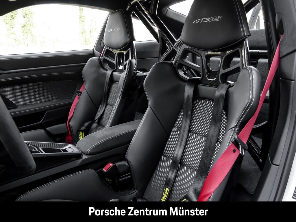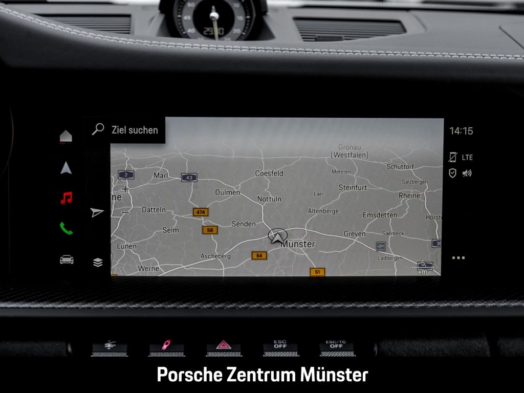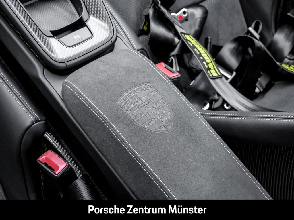 - Weiteres: (6A9) Clubsportpaket, (2UH) Liftsystem Vorderachse, (0I2) 90 Liter Kraftstofftank, (FZ1) Sicherheitsgurte indischrot, (4QX) 6-Punkt-Gurt für Beifahrerseite, (2C6) Verkleidung Lenksäule Leder, (6E5) Porsche Wappen auf Deckel Ablagefach Race-Tex, (AFB) Fahrzeugschlüssel lackiert in Exterieurfarbe mit Schlüsseletui Race-Tex, (7M8) Türeinstiegsblenden Carbon matt, beleuchtet, (8JU) LED-Matrix Hauptscheinwerfer abgedunkelt inkl. Porsche Dynamic Light System Plus (PDLS Plus), (KA2) ParkAssistent hinten inkl. Rückfahrkamera, (QR9) Verkehrszeichenerkennung