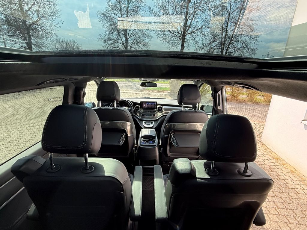 Ablagenetz an Fondsitzlehnen, Ablagenetz an Vordersitzlehne links, Adaptives Bremslicht, Airbag Beifahrerseite, Airbag Fahrerseite, Ambiente-Beleuchtung, Anfahrhilfe (Berganfahr-Assistent), Anhängerkupplung: Elektrik für Anhängersteckdose, Antriebsart: Allradantrieb, Anzeige für Waschwasserstand, Armaturentafel Oberteil in Ledernachbildung, Armlehnen Fahrgastraum, Auflastung auf 3,1 t, Außenspiegel asphärisch, beide, Außenspiegel elektr. verstell- und heizbar, beide, Außenspiegel mit integrierter Blinkleuchte, Außentemperaturanzeige, Beleuchtung im Haltegriff Fond mit Lesespot, BlueEfficiency-Paket, Bodenbelag: Teppich im Fahrerraum, Bodenbelag: Teppich im Lade-/Fahrgastraum, Bremsassistent, Bremssystem mit ABS+ASR, DAB-Tuner (Radioempfang digital), Dachverkleidung / Innenhimmel Dinamica schwarz, Design- und Ausstattungslinie Exclusive, Design-Paket Interieur, Direktlenkung mit variabler Lenkkraft-Unterstützung, Einschaltautomatik für Fahrlicht, Einstiegsbeleuchtung mit Logo Projektionsfunktion, Einstiegsgriff hinten, Einstiegsleisten mit Schriftzug Mercedes-Benz (beleuchtet), Einstiegsleuchten, Exclusive, Fahrassistenz-System: Attention-Assist (Müdigkeitserkennungs-Sensor), Fahrassistenz-System: Fernlichtassistent Plus, Fahrassistenz-System: Pannenmanagement, Fahrassistenz-System: Seitenwind-Assistent, Fahrassistenz-System: Verkehrszeichenerkennung, Fenster für hintere Türen / Heckklappe mit Wisch-/Waschanlage, Fenster im Lade-/FG-Raum: - feststehend, vorn links, Fenster im Lade-/FG-Raum: - feststehend, vorn rechts, Feststellbremse elektrisch, Feststeller Schiebetür (Aktiv), Getriebe Automatik GTronic - (9-Stufen), Gurtstraffer, Haltegriffe im Fond, Handschuhfach abschließbar, Harnstofftank (AdBlue): 24 Ltr., Heckklappe mit automatischem Öffnungs- und Schließsystem, Heckscheibe aufstellbar, Heckscheibe heizbar, Intelligent Light System LED, Karosserie/Aufbau: Bus, Karosserie/Aufbau: lang, Kindersicherung, Klimaautomatik Fond (Tempmatik), Kombiinstrument mit Farbdisplay, Komfort-Klimaautomatik Thermotronik, Komfortbeleuchtung im Fahrgast-/Laderaum, Kommunikationsmodul Mercedes me connect (Internetbasierende Dienste), Kopf-Airbag-System (Windowbag), Kopf-Schulter-Airbag (Thoraxbag) Fahrer-/Beifahrerseite, Lenkrad (Lenksäule mech. verstellbar), Lenkrad mit Multifunktion inkl. Reiserechner, Leuchtweitenregelung, Mercedes-Benz Notrufsystem, Metallic-Lackierung, Mittelkonsole mit Kühlfach, Modellpflege, Motor 2,0 Ltr. - 174 kW CDI KAT, Multimediasystem MBUX (Touchscreen 10,25"), Navigationssystem für Multimediasystem MBUX, Panorama-Schiebedach vorn elektrisch, mit Panoramadach hinten, Park-Paket mit 360° Kamera, PKW-Zulassung, PTC Heater, Radstand 3200 mm, Reifendruck-Kontrollsystem, Rückspiegel innen, Schadstoffarm nach Abgasnorm Euro 6d, Scheibenwischer mit Regensensor, Schiebetür Lade-/Fahrgastraum links, Schiebetür links elektrisch, Schiebetür rechts elektrisch, Sicherheitsgurt-System mit Warnanlage (Beifahrerseite), Sitz-Komfort-Paket, Sitzausstattung: Isofix-Kindersitz-System, Sitzausstattung: Schnellverriegelung für Sitzschienen-System, Sitzbezug / Polsterung: Leder Nappa, Sitze im Fahrerhaus: Fahrer- und Beifahrersitz klimatisiert, Sitze im Fahrerhaus: Fahrersitz elektr. verstellbar (mit Memory), Sitze im Fahrerhaus: Fahrersitz mit Lendenwirbelstütze, Sitze im Lade-/FG-Raum: 1.Reihe, 1 Einzelsitz links, Sitze im Lade-/FG-Raum: 1.Reihe, 1 Einzelsitz rechts, Sitze im Lade-/FG-Raum: 1.Reihe, Sitzklimatisierung im Fond, Sitze im Lade-/FG-Raum: 2.Reihe, 1 Einzelsitz links, Sitze im Lade-/FG-Raum: 2.Reihe, 1 Einzelsitz rechts, Sitze im Lade-/FG-Raum: 2.Reihe, Sitzklimatisierung im Fond, Sonnenblenden mit Spiegel (beleuchtet), Spiegel-Paket, Sport-Paket Exterieur, Steckdose (12V-Anschluß) im Lade-/Fahrgastraum, Stoßfänger / Stoßf.-Leiste seitlich + Griff an Heckklappe lackiert, Surround-System Burmester, Verglasung hinten abgedunkelt / Schwarzglas, Vlies-Batterie 92 Ah, Vorbereitung Navigationssystem (für Multimediasystem MBUX), Warmluftkanal zum Lade-/Fahrgastraum, Wartungsintervall-Anzeige Assyst, Wärmeschutzverglasung